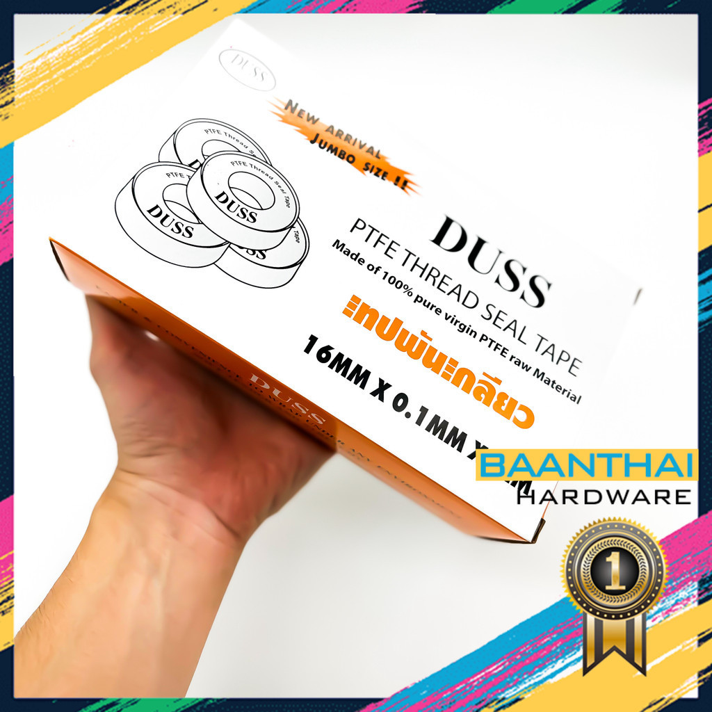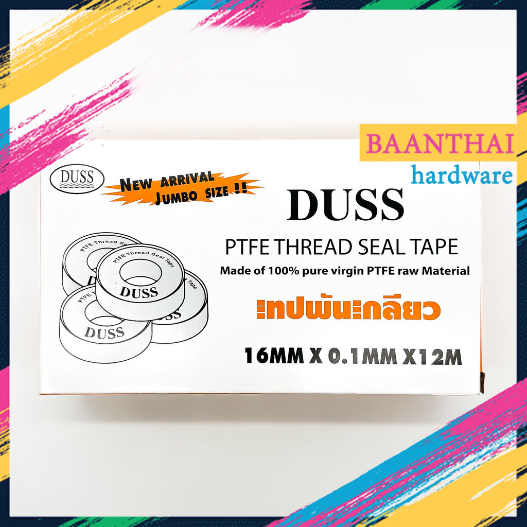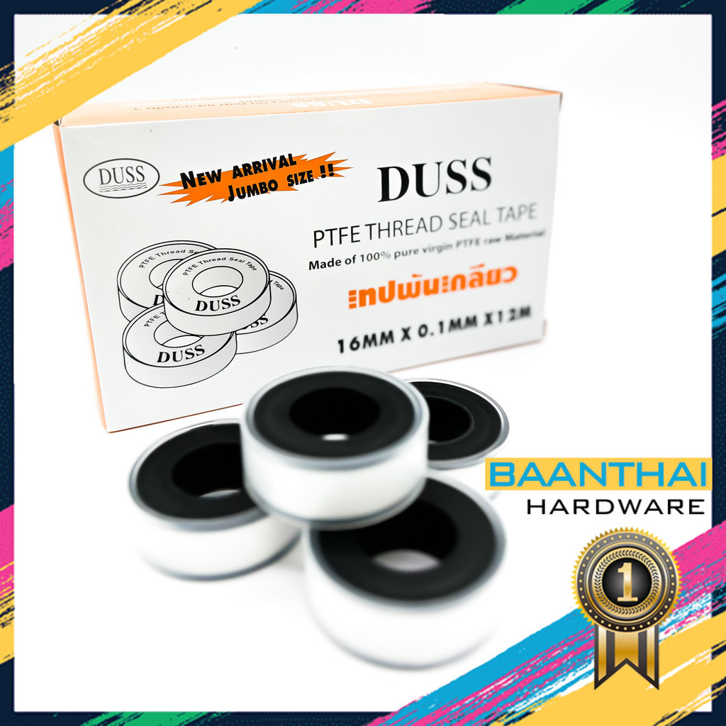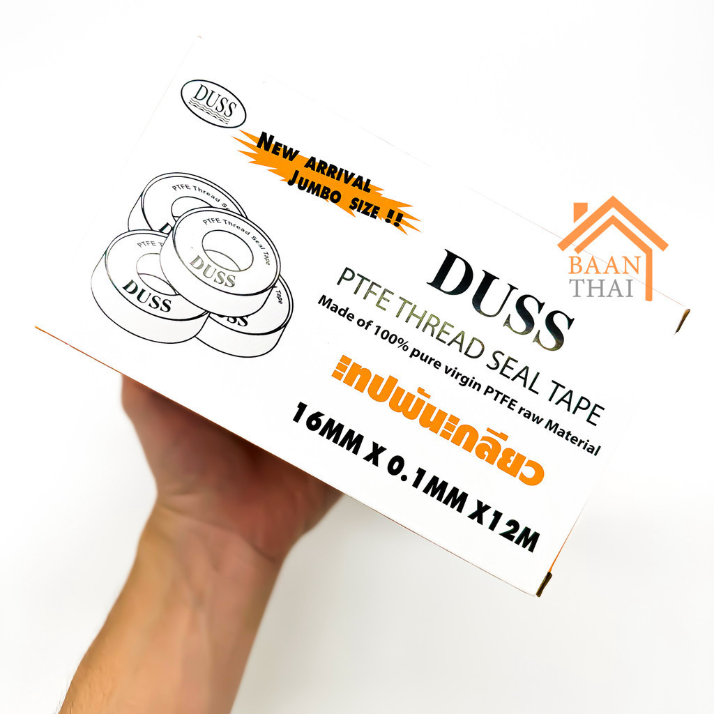 เทป พัน เกลียว PTFE100% ยี่ห้อ DUSS 12M X 16MM X 0.1 MM. อย่างหนา คุ้มค่า ราคาถูก คุณภาพดี!!!