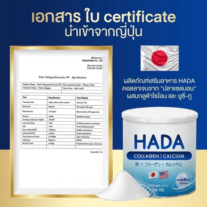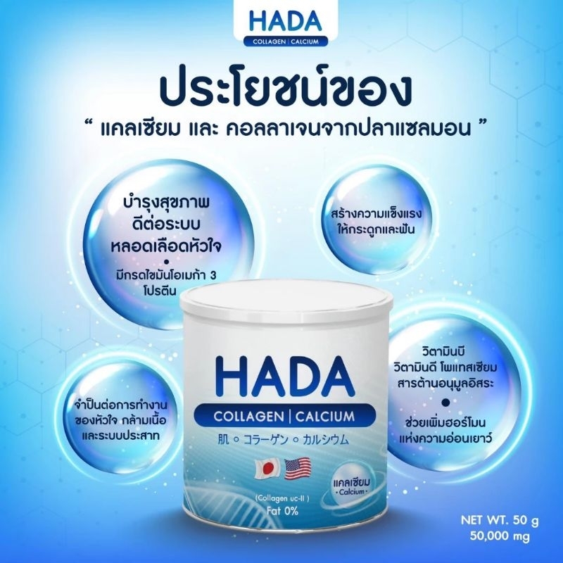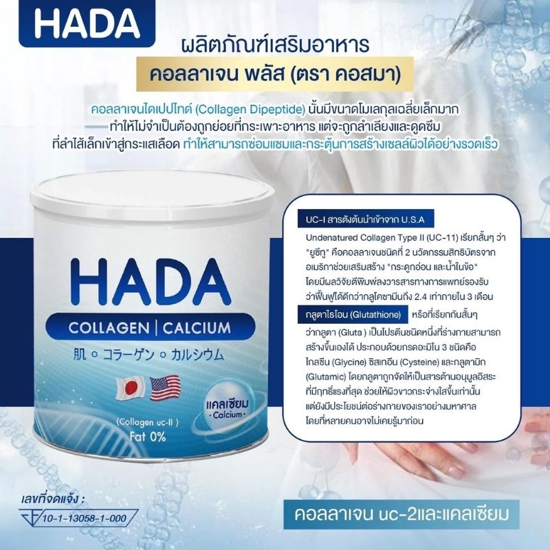 Hada Collagen ด้วยปริมาณคอลลาเจน 🐟 + แคลเซียม สูตรคุณหมอโดยเฉพาะ