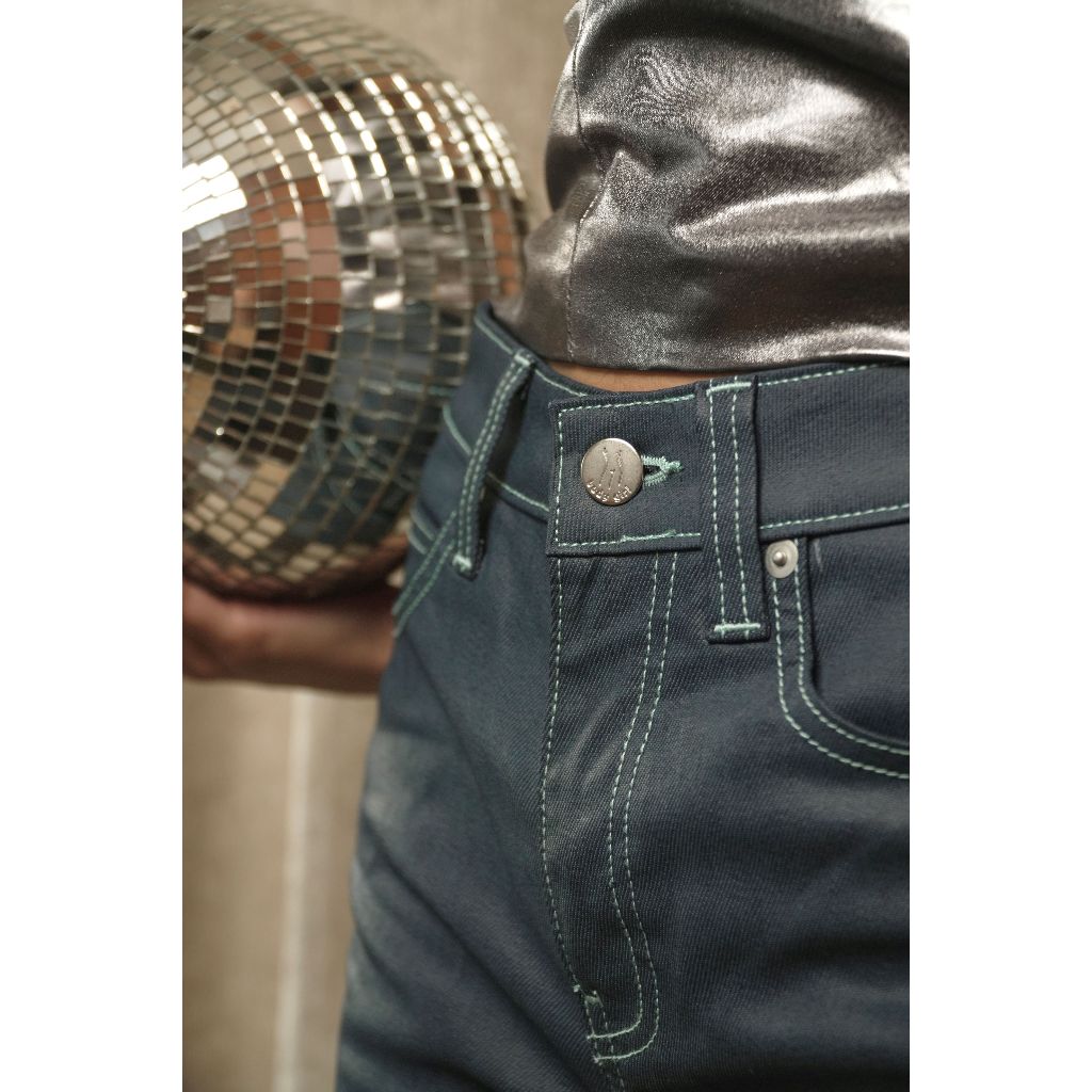 มาถึงรุ่นที่จี๊ดดดดเจ่บสุดในคอลนี้ น้องคือ Disco denim pants เป็นไอเทมที่เราได้รับ inspired จาก disco pub ซึ่งพอใส่ออกมาให้ลุคที่เหมาะกับการปาตี้สุดๆ ลุค iconic สุดๆ น้อง Disco denim pants เป็นกางเกงทรงขากระบอกใหญ่เอวต่ำ ที่ทางเราพิถีพิ