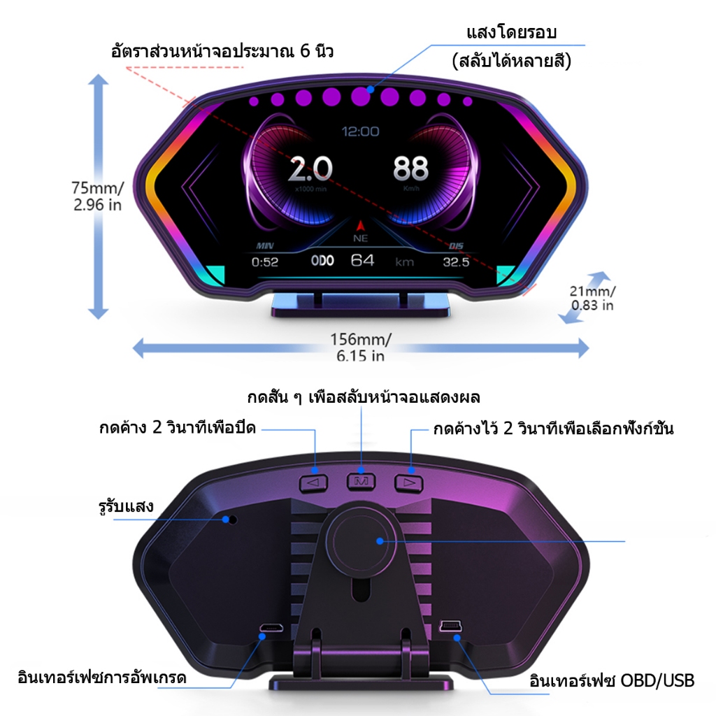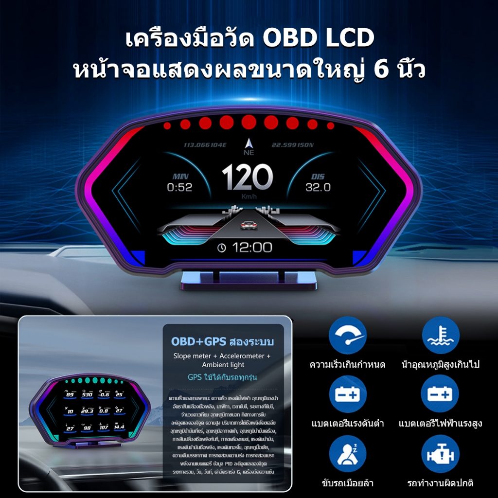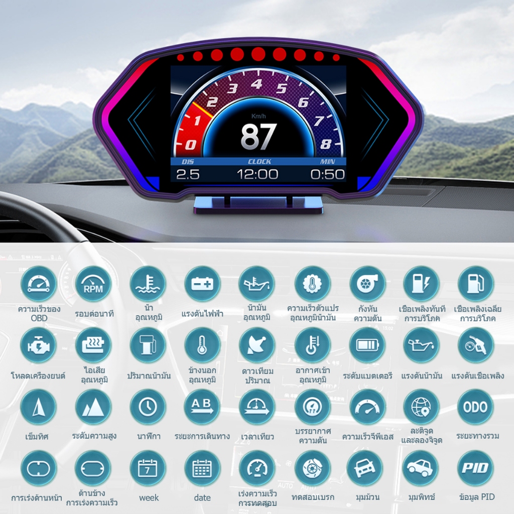 OBD2+GPS+SlopeMeter Smart Gauge สมาร์ทเกจ Digital Meter/Display P3(2023) HUD Speedometers เกจวัดรถยนต์ วัดความร้อน