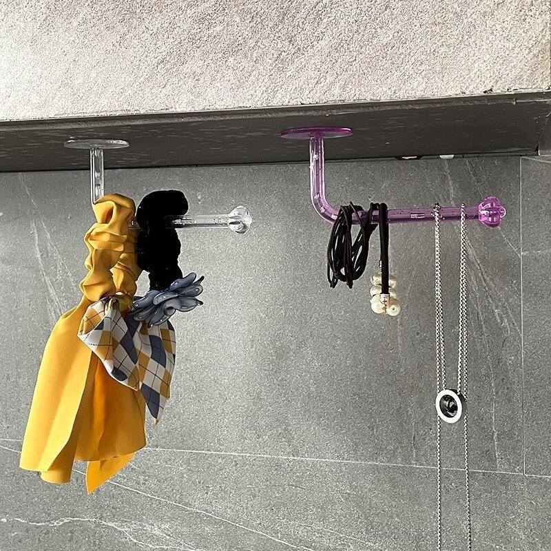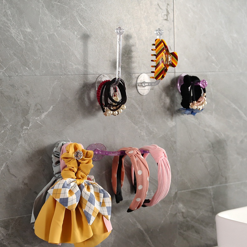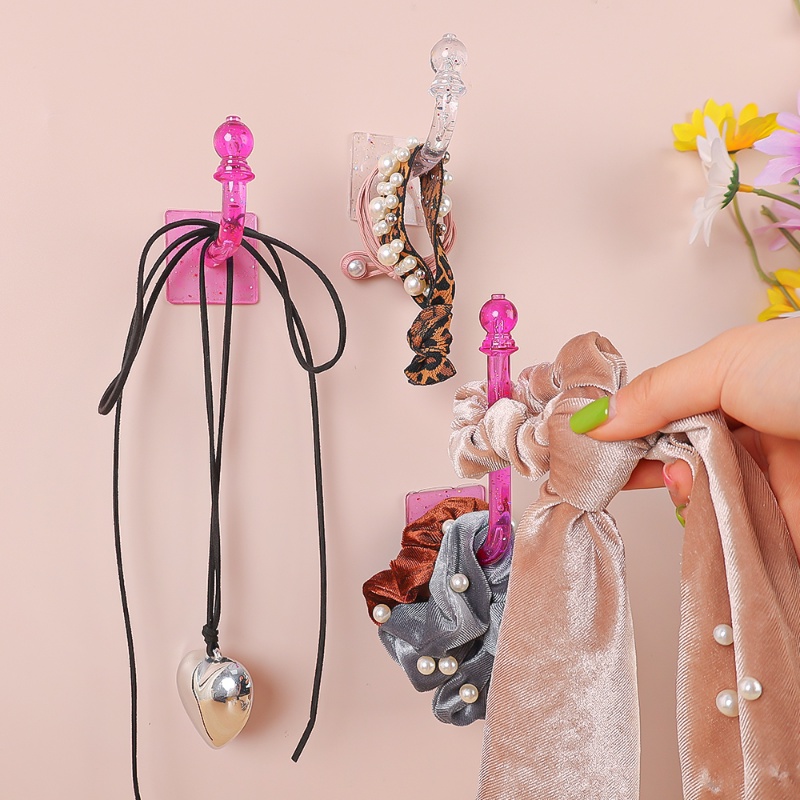 ตะขอคริสตัลใส อเนกประสงค์ มีกาวในตัว ไม่ต้องเจาะผนัง ทนทาน สําหรับแขวนเครื่องประดับ ที่คาดผม ตกแต่งบ้าน