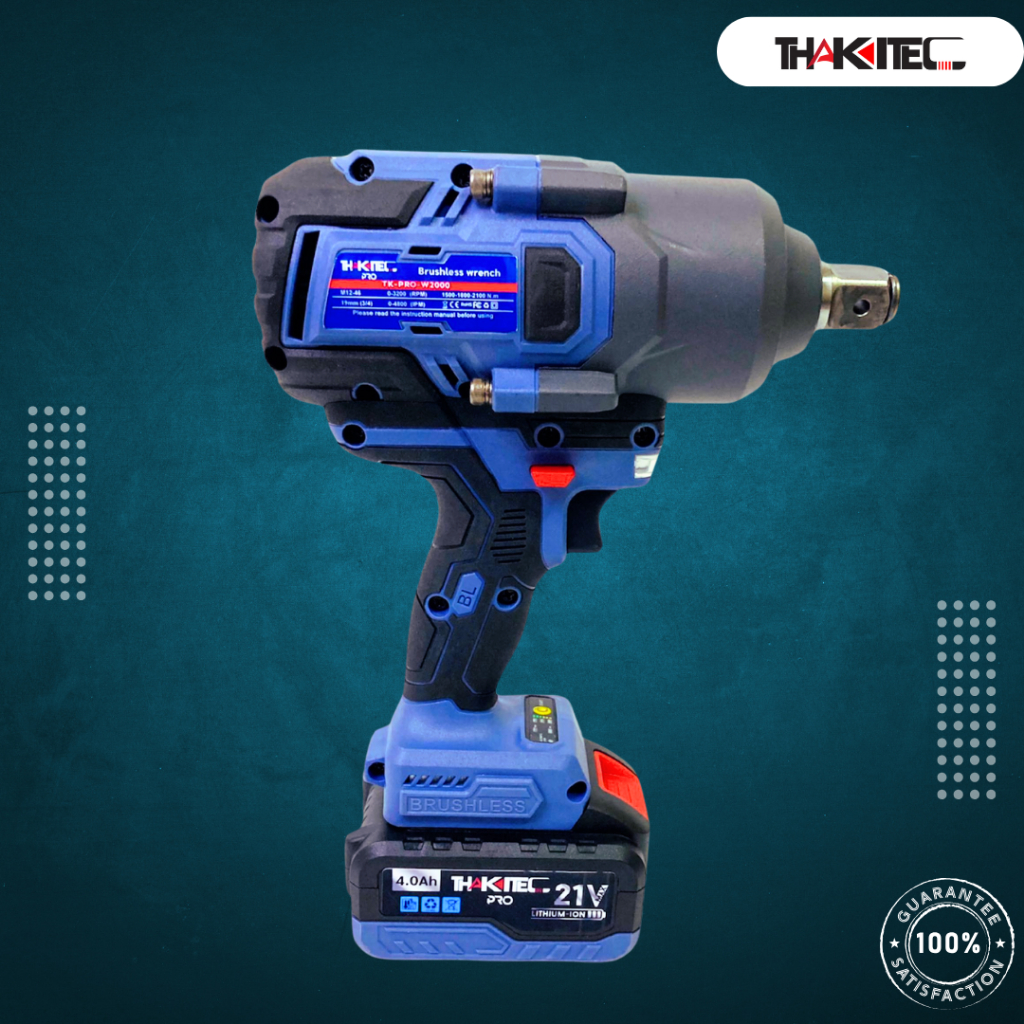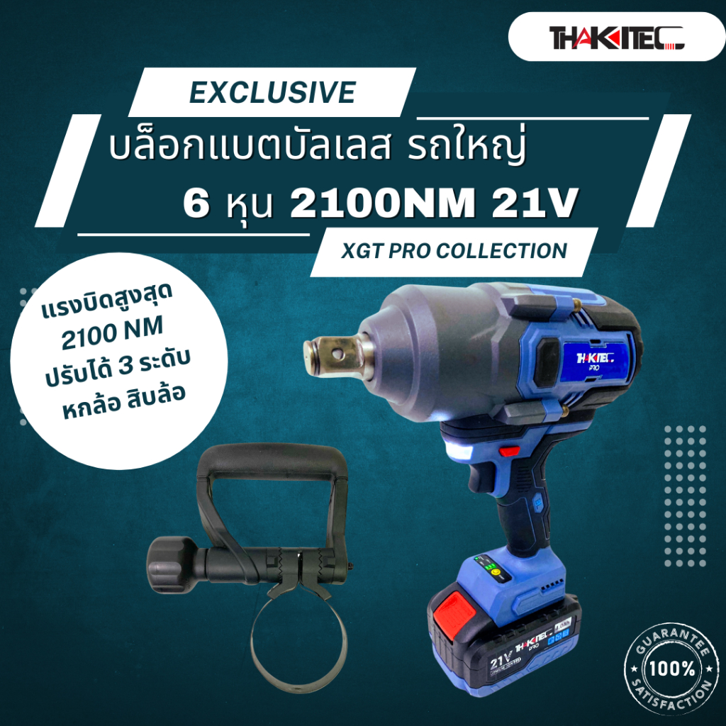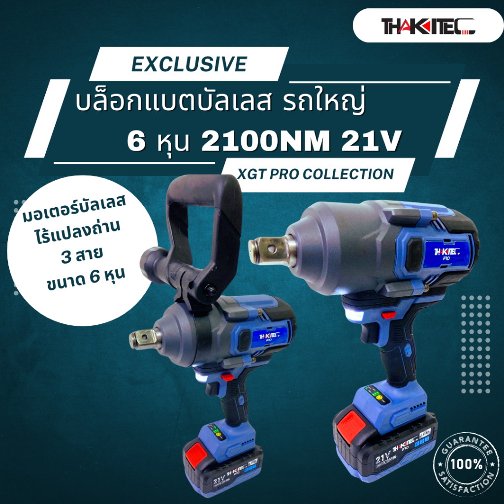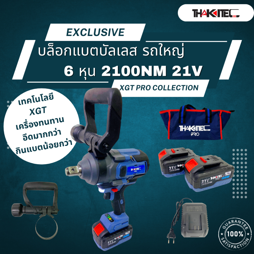 THAKITEC XGT PRO บล็อกแบตกระแทกบัสเลส แรงบิด 2100 NM ขนาด 6 หุน แบตเตอรี่ 21VMAX 4.0/6.0 Ah จำนวน 2 ก้อน ถอดรถ 10 ล้อ แรงบิดสูงที่สุด รุ่น TKXGTW2000