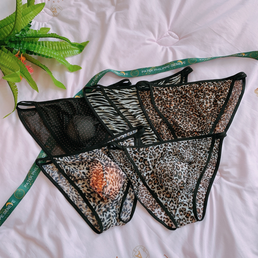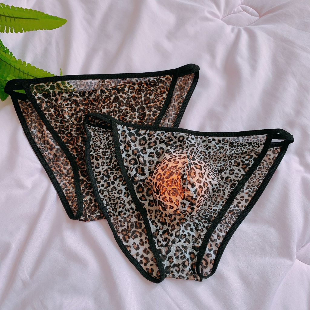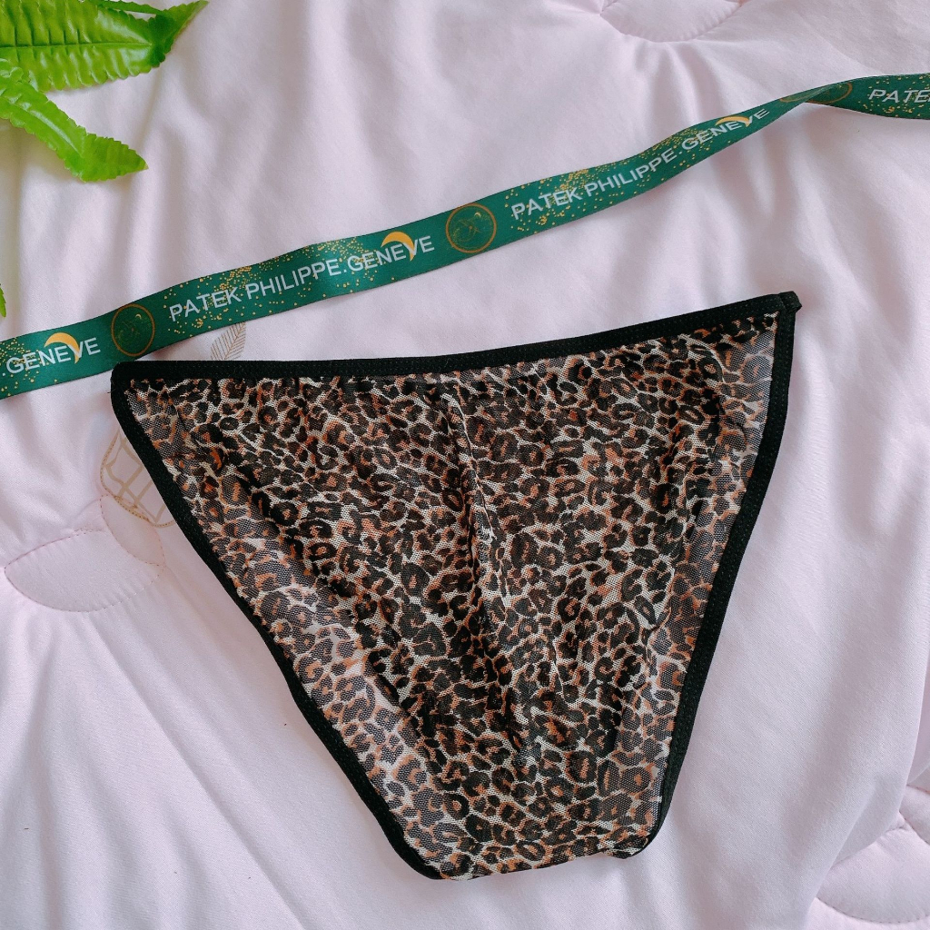 กางเกงชั้นใน เอวต่ําเซ็กซี่ ผ้าตาข่าย พิมพ์ลายเสือดาว แฟชั่นสําหรับผู้ชาย