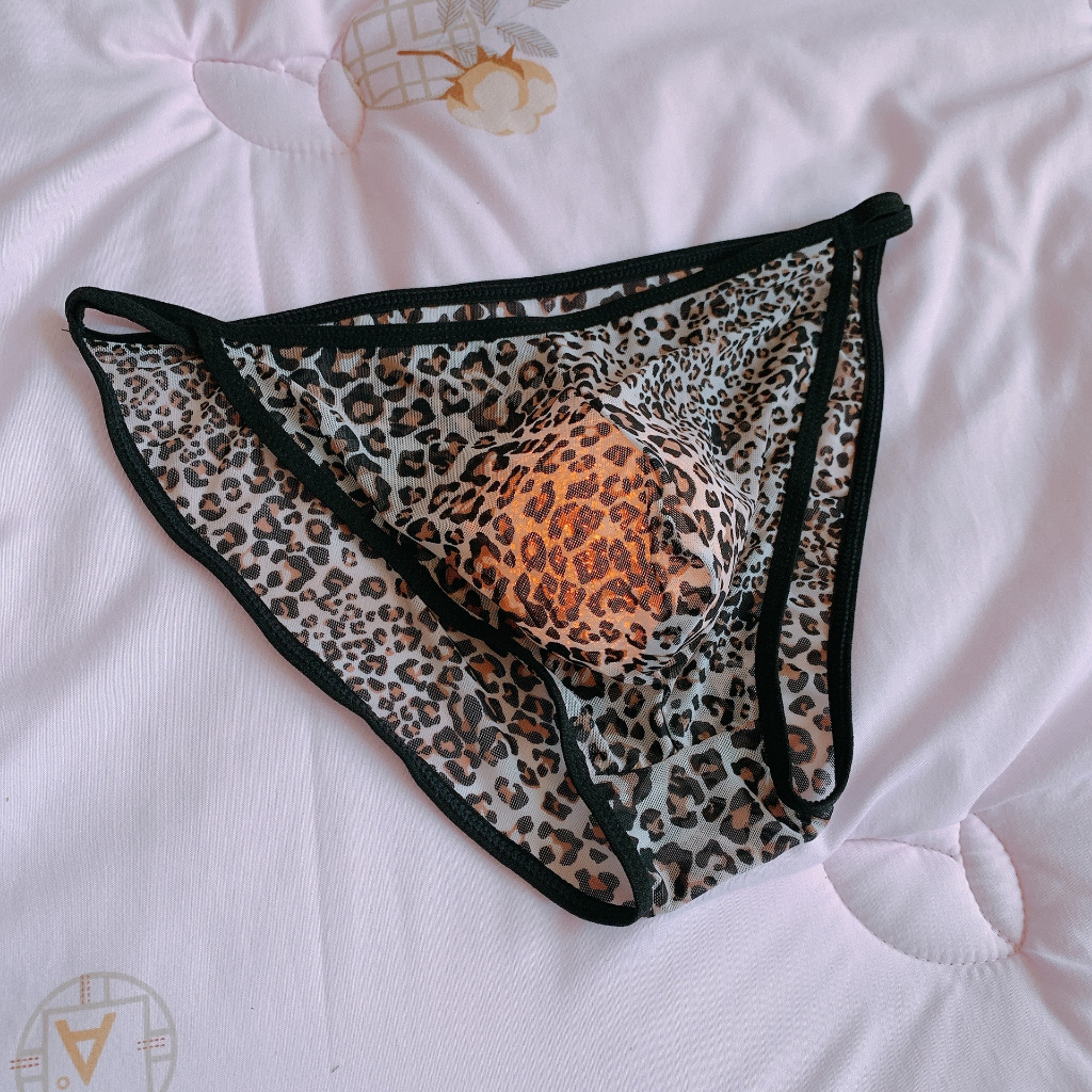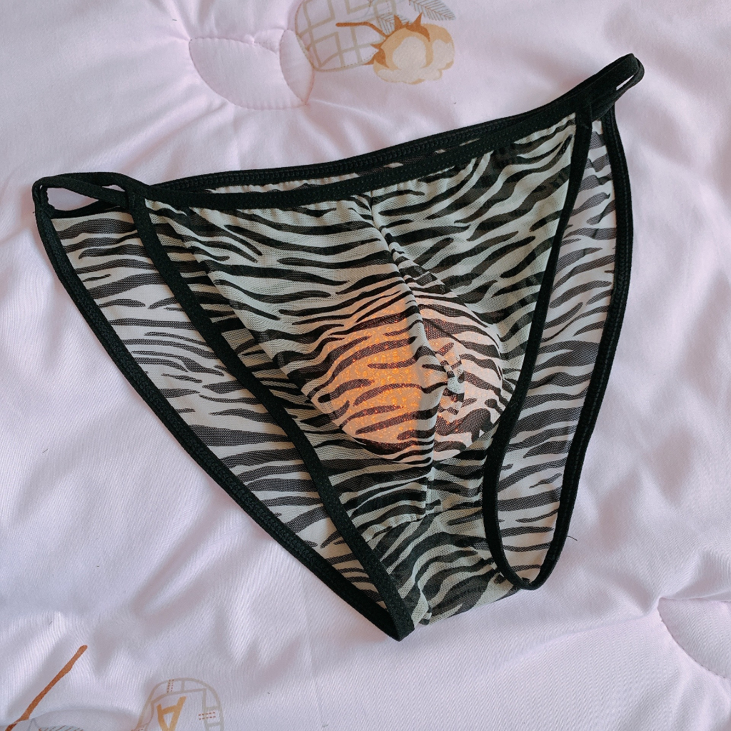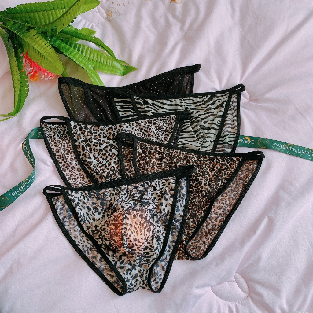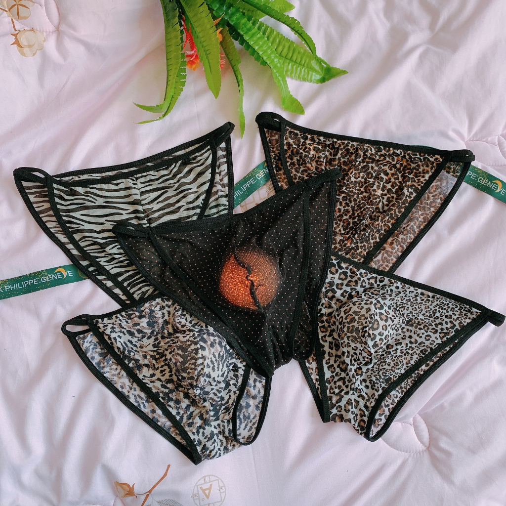 กางเกงชั้นใน เอวต่ําเซ็กซี่ ผ้าตาข่าย พิมพ์ลายเสือดาว แฟชั่นสําหรับผู้ชาย