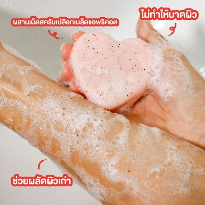 สบู่ลูกพีชสครับผิวกาย ฟองสบู่หนานุ่ม กลิ่นหอมสดชื่น ช่วยทำความสะอาดผิวกาย ก้น ผิวใต้วงแขนและขาหนีบอย่างหมดจดล้ำลึก พร้อมผสานเม็