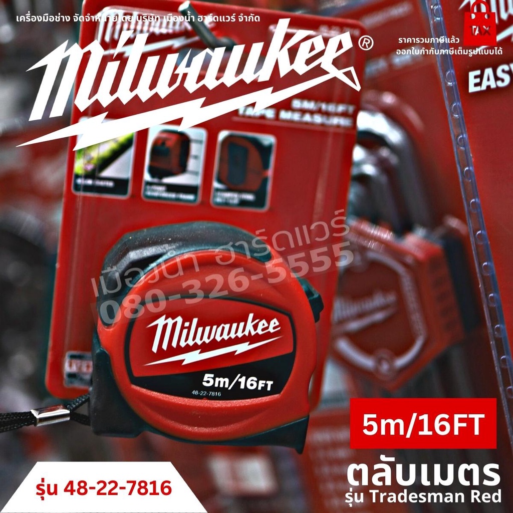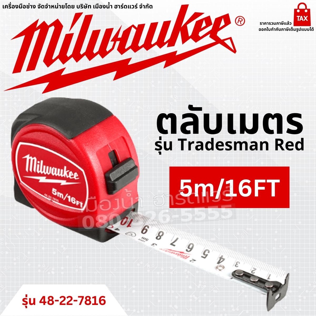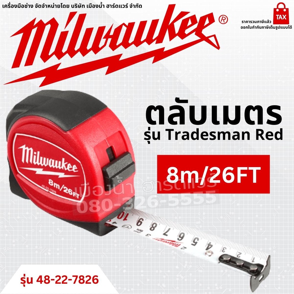 Milwaukee ตลับเมตร รุ่น Tradesman Red ขนาด 3 เมตร 5 เมตร 8 เมตร Tape Measure