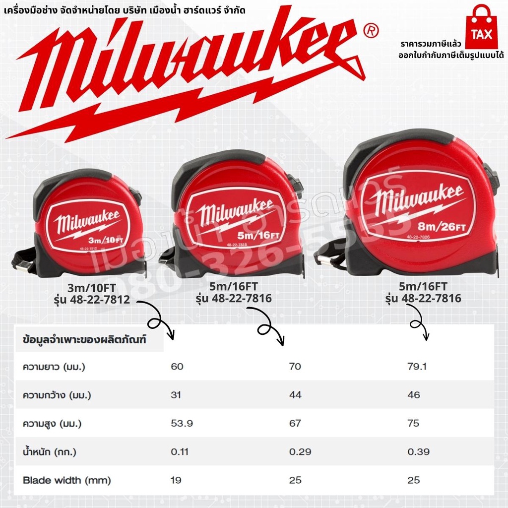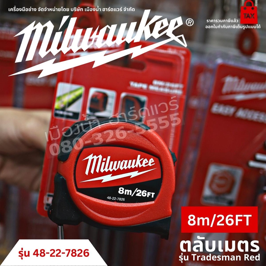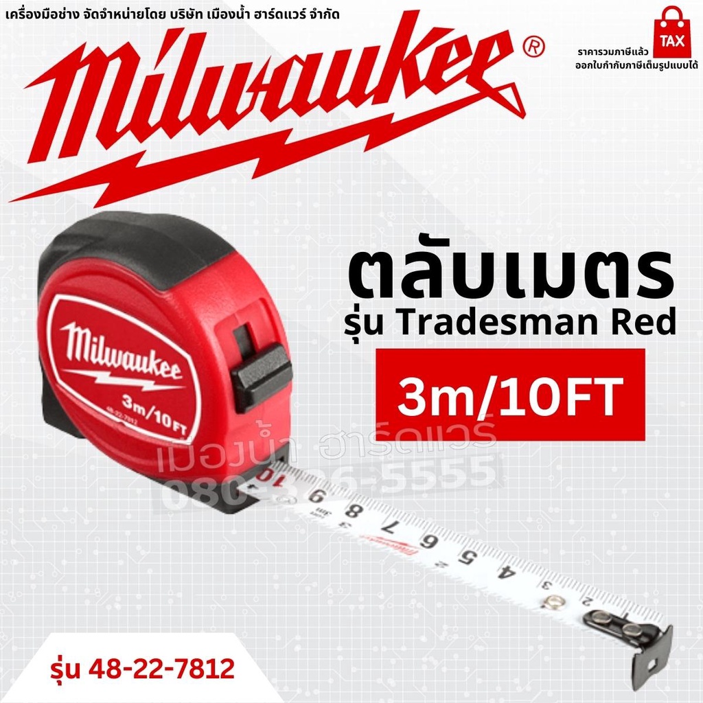Milwaukee ตลับเมตร รุ่น Tradesman Red ขนาด 3 เมตร 5 เมตร 8 เมตร Tape Measure