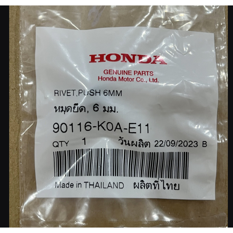 หยิบใส่ตะกร้าหมุดยึด, 6 มม. ใช้ได้กับHonda ทุกรุ่น CB300R CRF300L แท้เบิกศูนย์ 90116-K0A-E11 Rivet PUSH 6MM