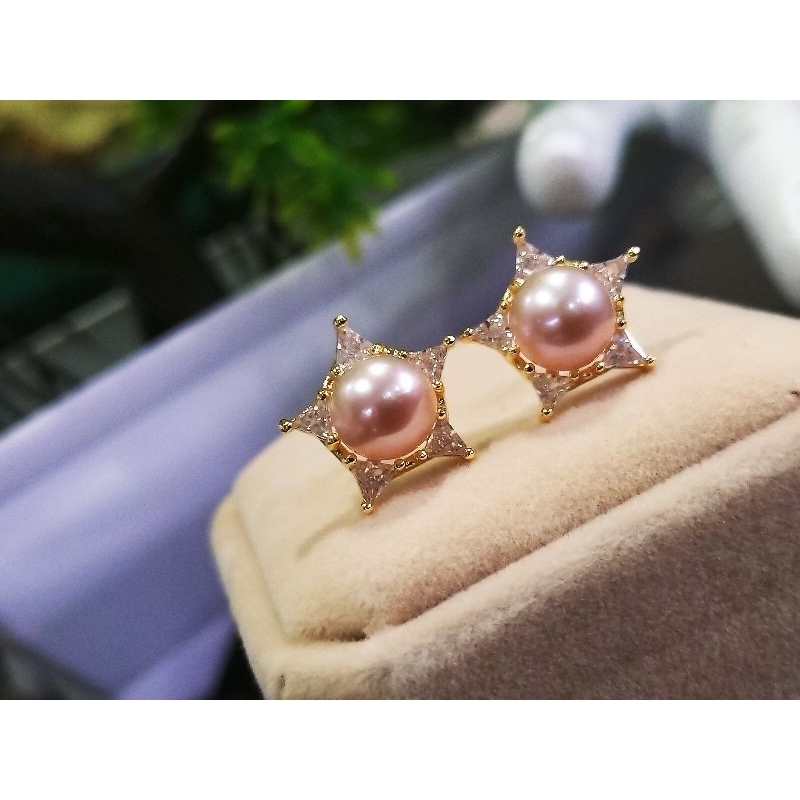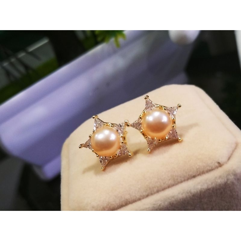 มุกแท้รูปดาว5แชกอะไหล่ทองชุบ18k ประดับcz……………………………….