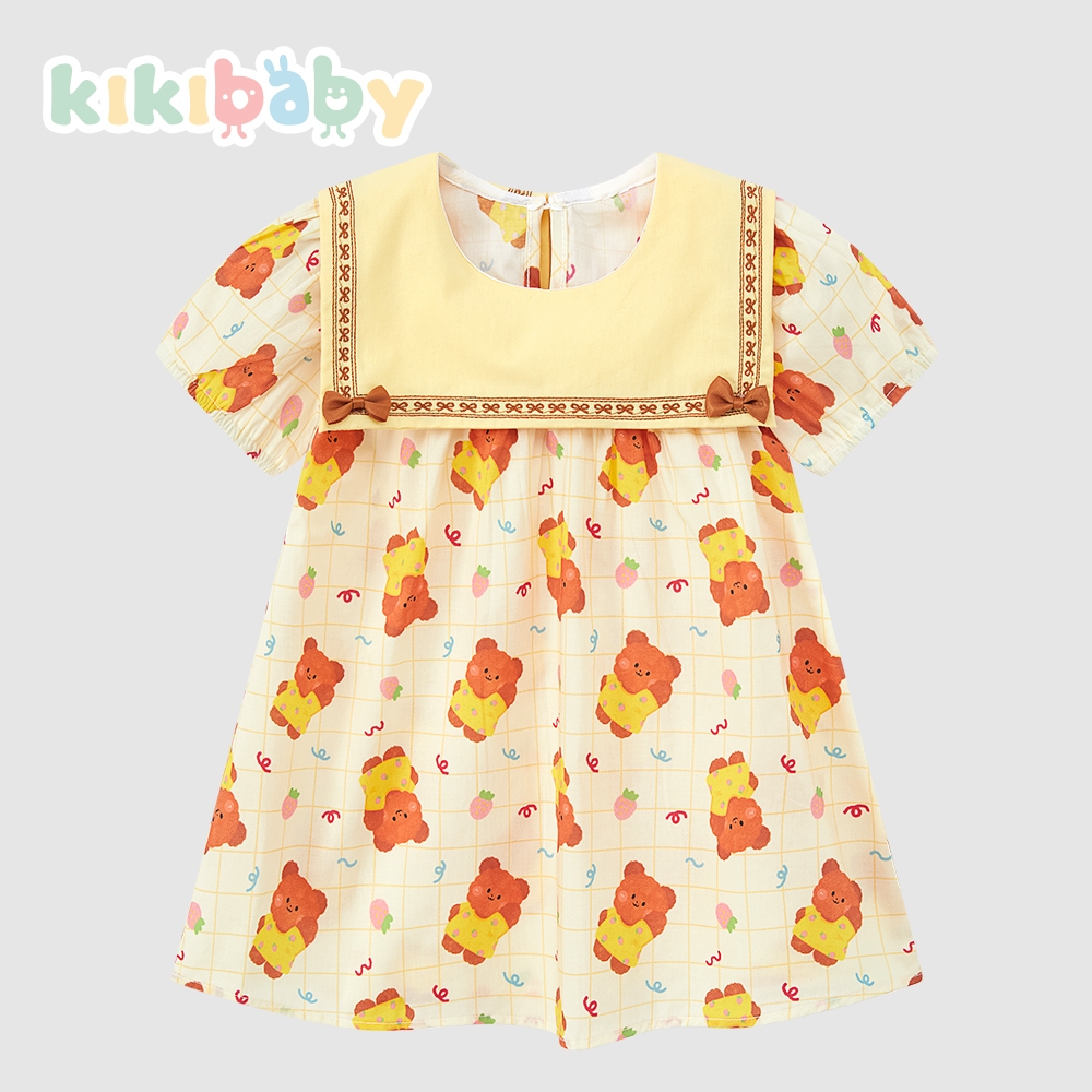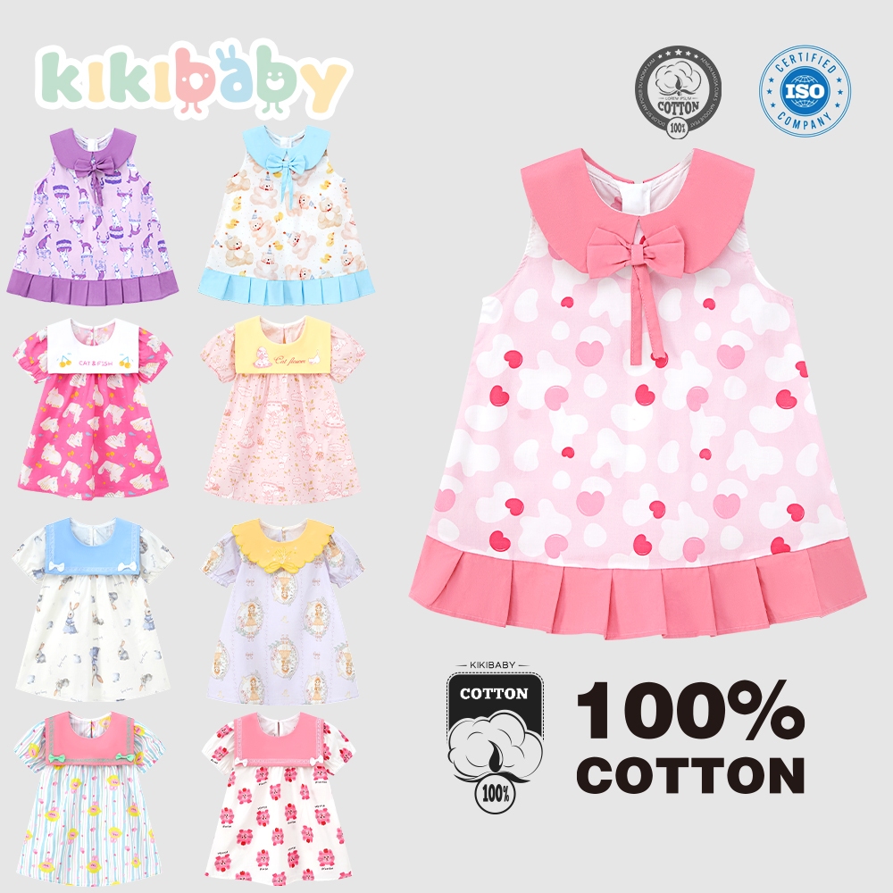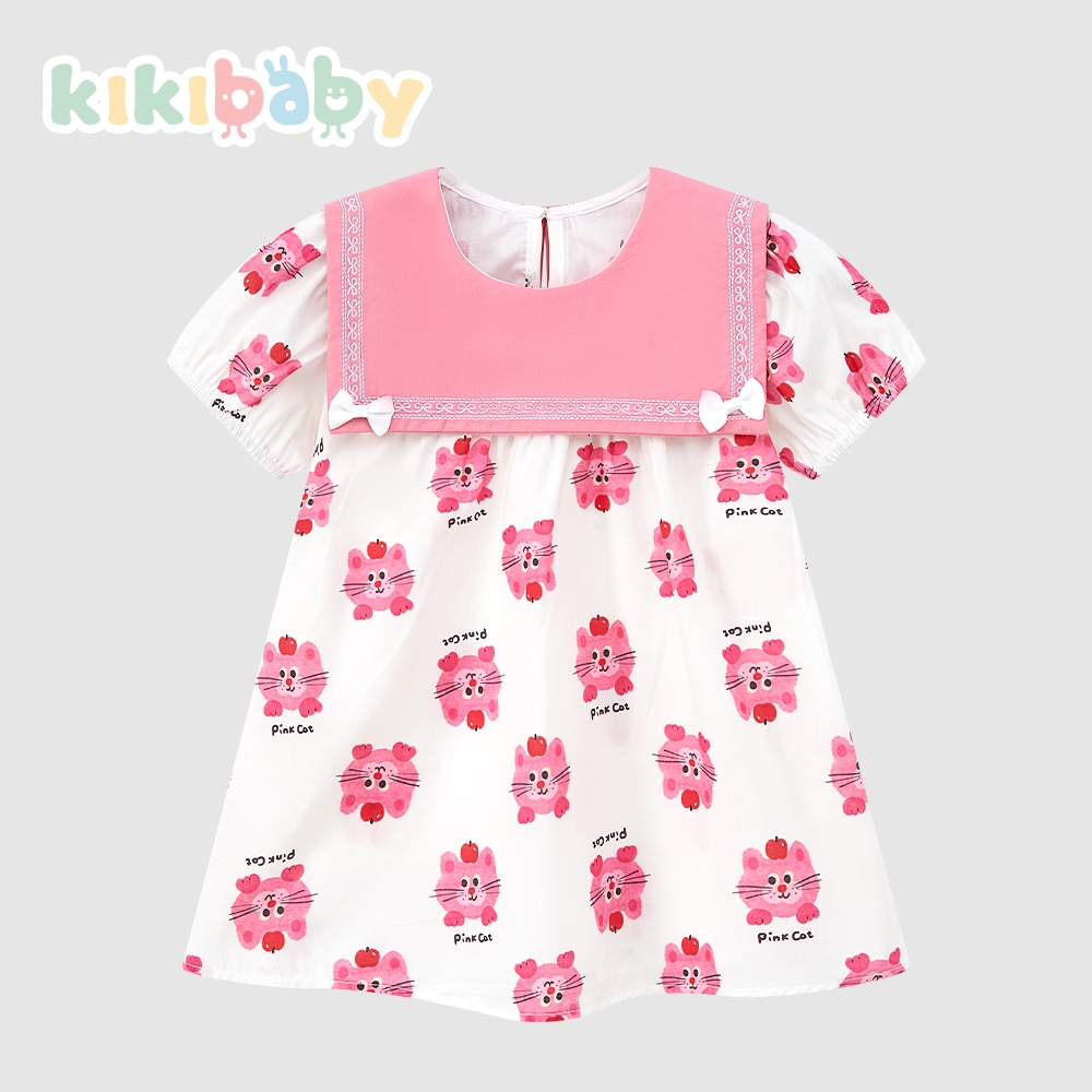 [80-120] เดรสคอปก ชุดเด็กผู้หญิง แต่งลูกไม้ สไตล์เกาหลี ชุดกระโปรงเด็ก ผ้าคอตตอนนิ่มใส่สบาย แฟชั่นเกาหลีKIKIBABY_QQ