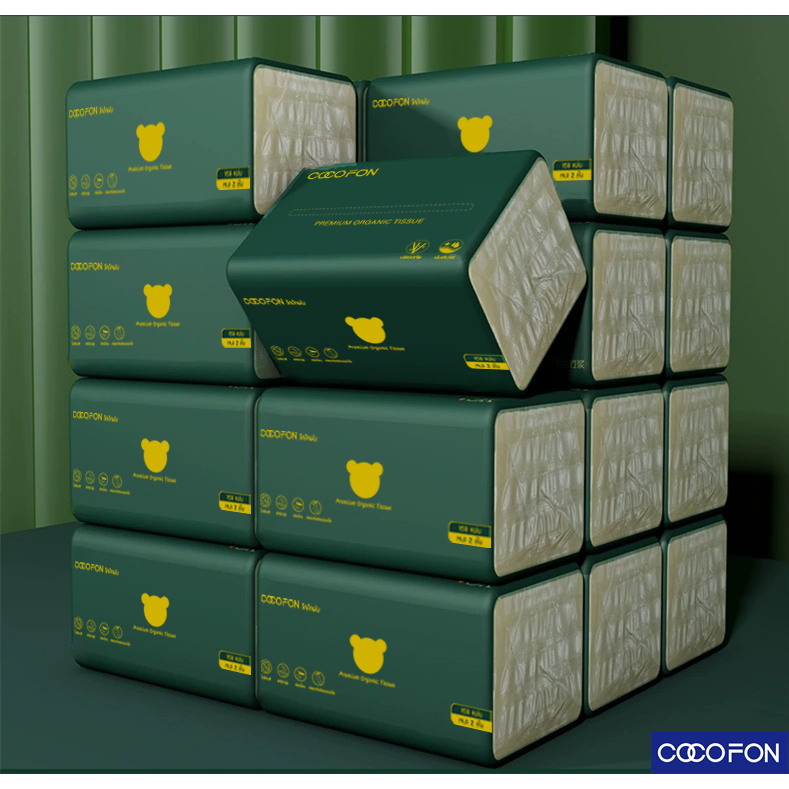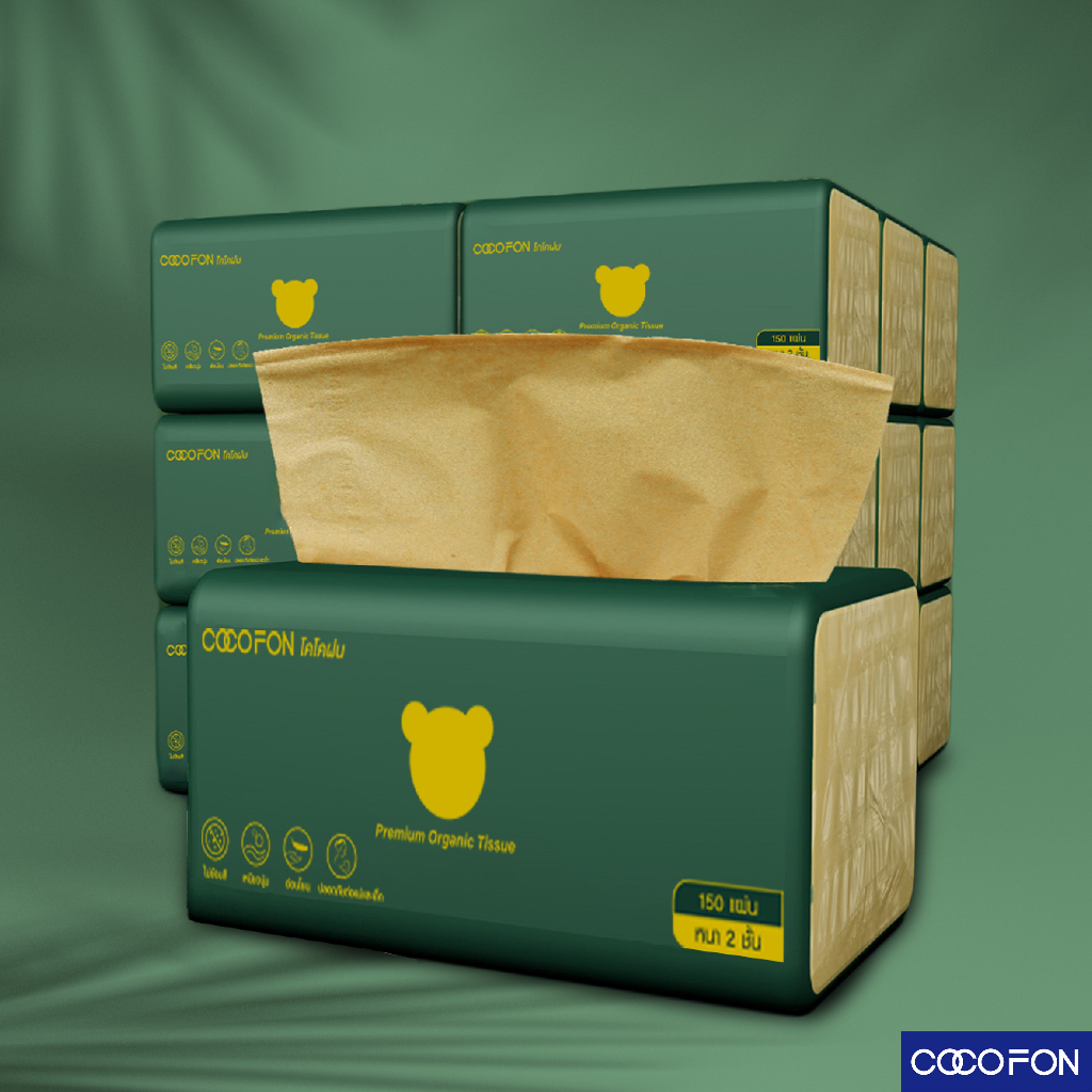 [กระดาษเช็ดหน้า] โคโคฝน พรีเมี่ยม ออร์แกนิค ทิชชู่ หนา2ชั้น 150แผ่น แพ็ค4ห่อ COCOFON Premium Organic Tissue (2Ply) Facial Tissue Pack4