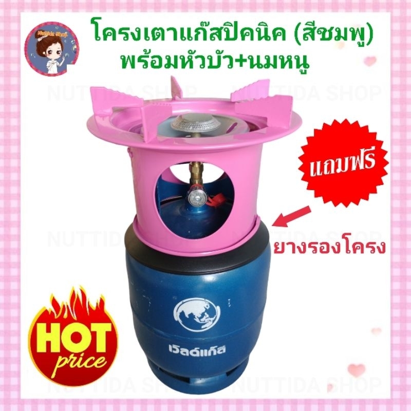 โครงเตาแก๊สปิคนิค สีชมพูแถมฟรี ยางรองโครง สำหรับถังปิคนิค 4 กก. โครงแก๊ส โครงปิคนิค