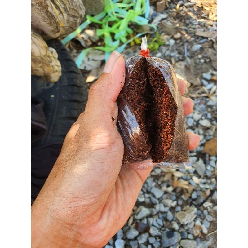 ตุ้มตอนขุยมะพร้าว ผสมน้ำยาเร่งราก + สายเคเบิ้ลไทร์ แพ็ค 10 ชิ้น