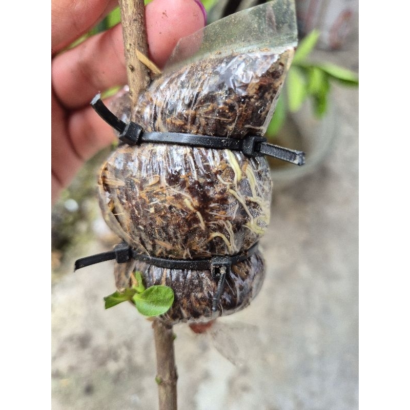ตุ้มตอนกิ่งพันธุ์ไม้ผสมน้ำยาเร่งราก+สายเคเบิ้ลไทร์ แพ็ค 10ชิ้น