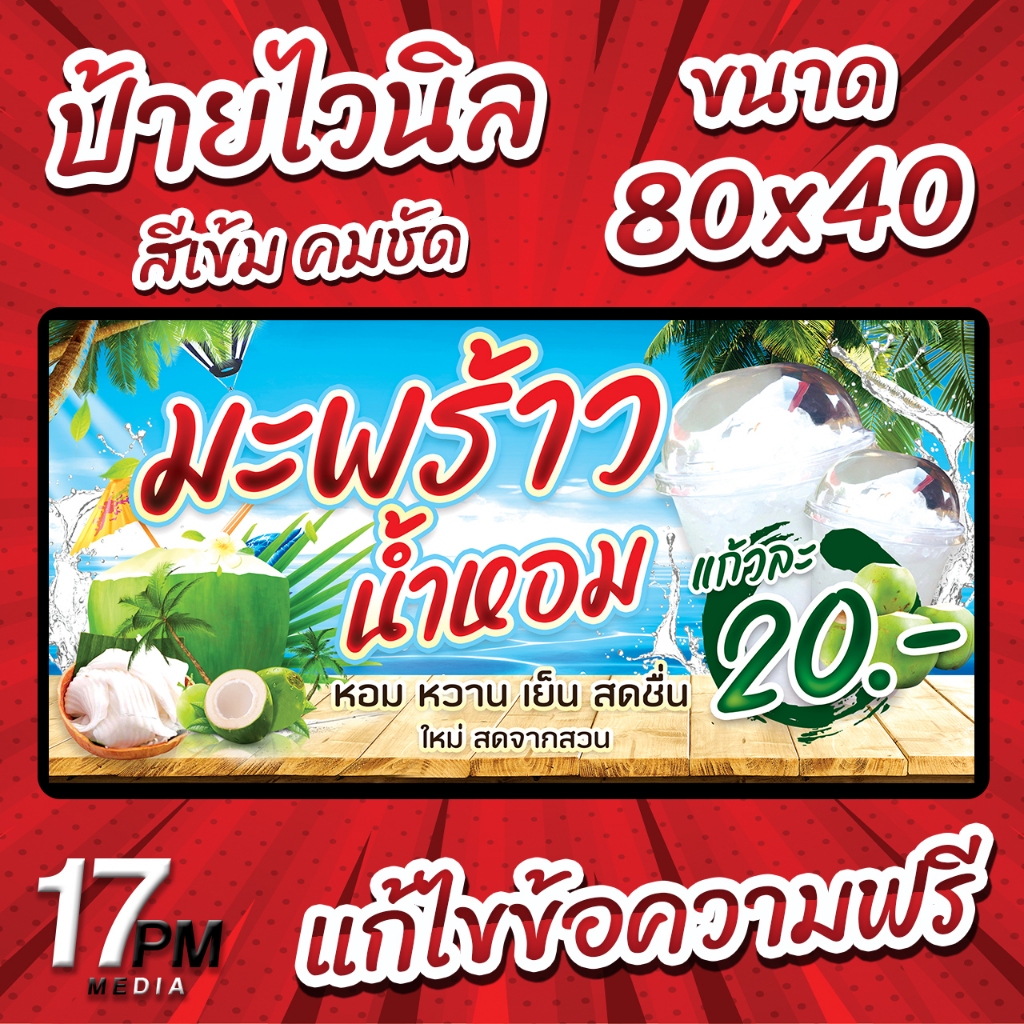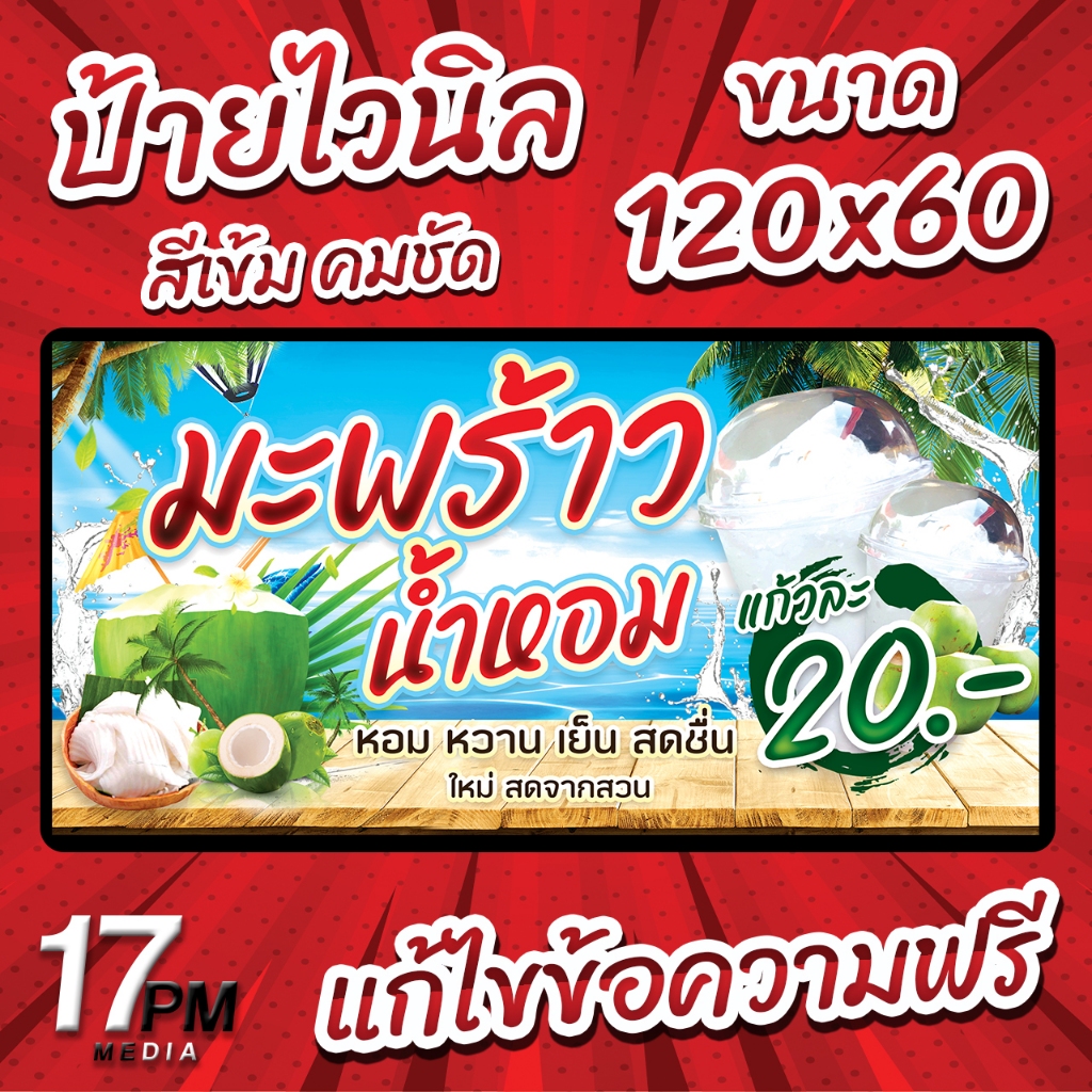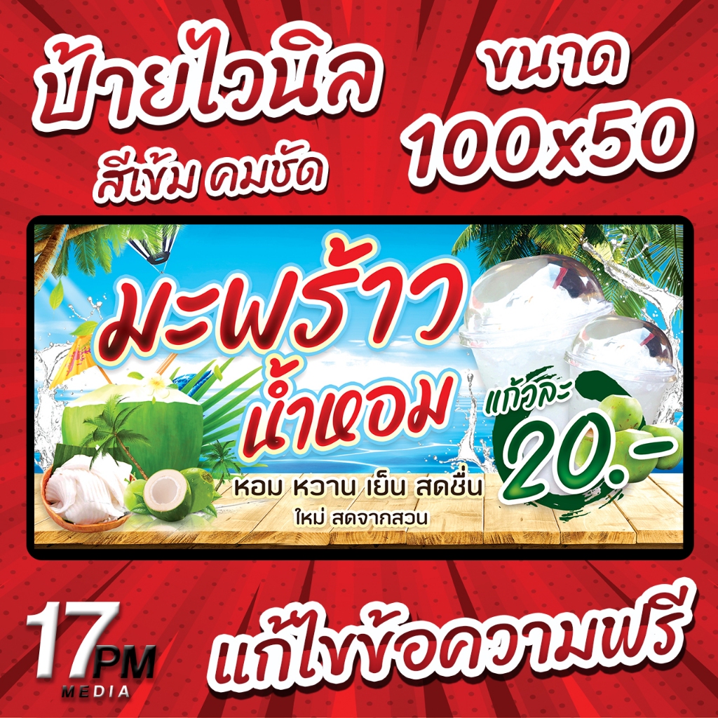 ✨ร้าน 17PM Design✨ ✅ ป้ายไวนิลพับขอบพร้อมเจาะรู ✅ – ไวนิลผ้าหนา 360 แกรม หนา ทน ขาดยาก – สีสด คมชัด ทนแดด ทนฝน – พับขอบเจาะตาไก่ฟรี – แก้ไขข้อมความได้ฟรี – ใช้ระยะเวลาผลิต 1-2 วัน และจัดส่ง 2-3 วัน – กรณีลูกค้าแก้ไขข้อมูล อาจใช้เวลานานกว่าที่กำหนด – ตร
