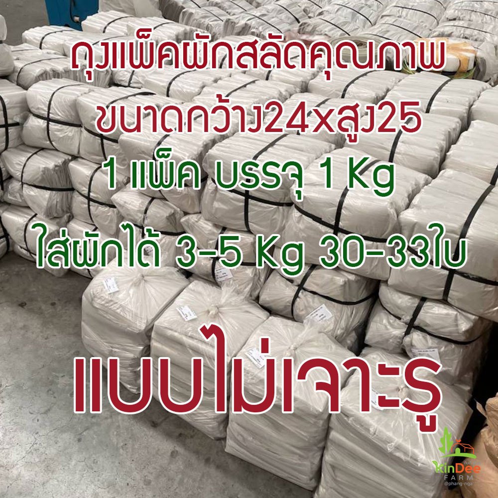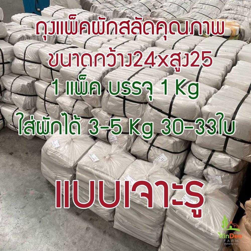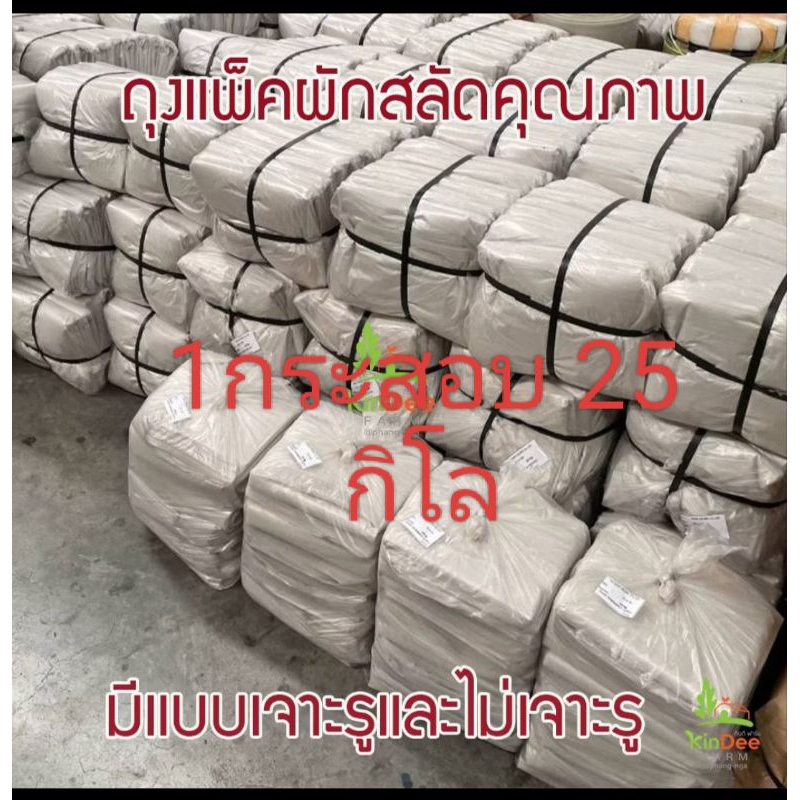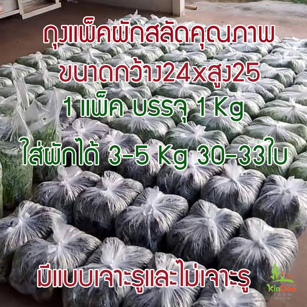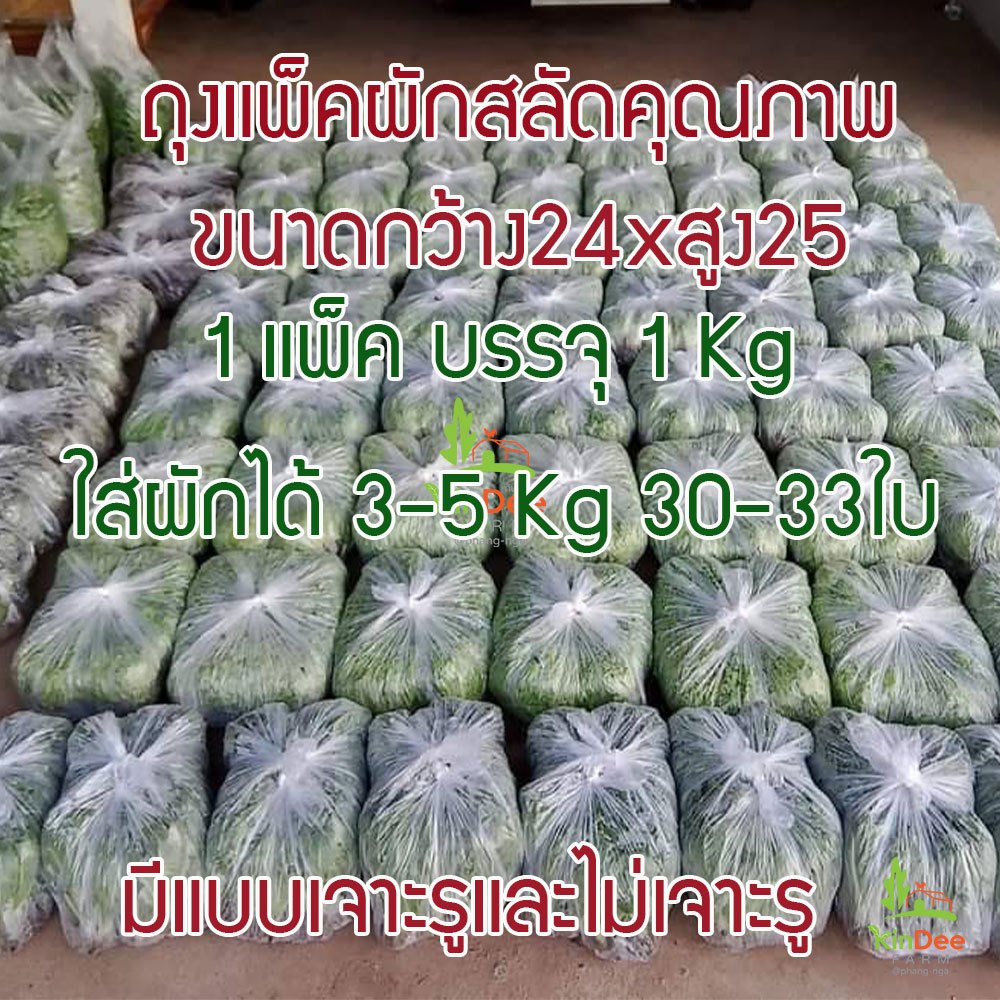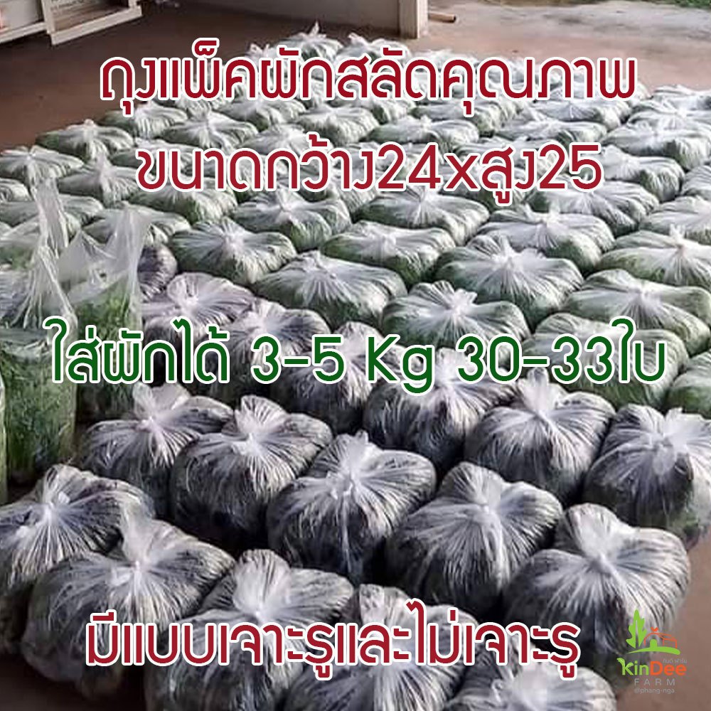 ถุงแพ็คผักสลัดคุณภาพดี พลาสติกเหนียวอย่างดีไม่ขาดง่าย ขนาด24นิ้วxสูง25นิ้ว,14×23นิ้ว 1แพ็คบรรจุ1Kg 30-33ใบใส่ผักได้3-5Kg