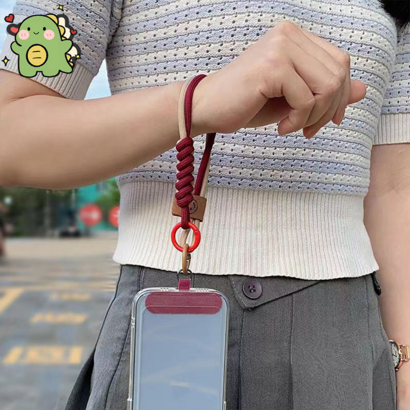 [YUE]สไตล์อังกฤษสีคมชัดสานผ้าฝ้ายสตริงโทรศัพท์มือถือเชือกเส้นเล็กสั้นจี้แบบพกพาป้องกันการสูญหายและป้องกันการล่มสลายข้อมือโทรศัพท์มือถือเสน่ห์ผู้หญิง