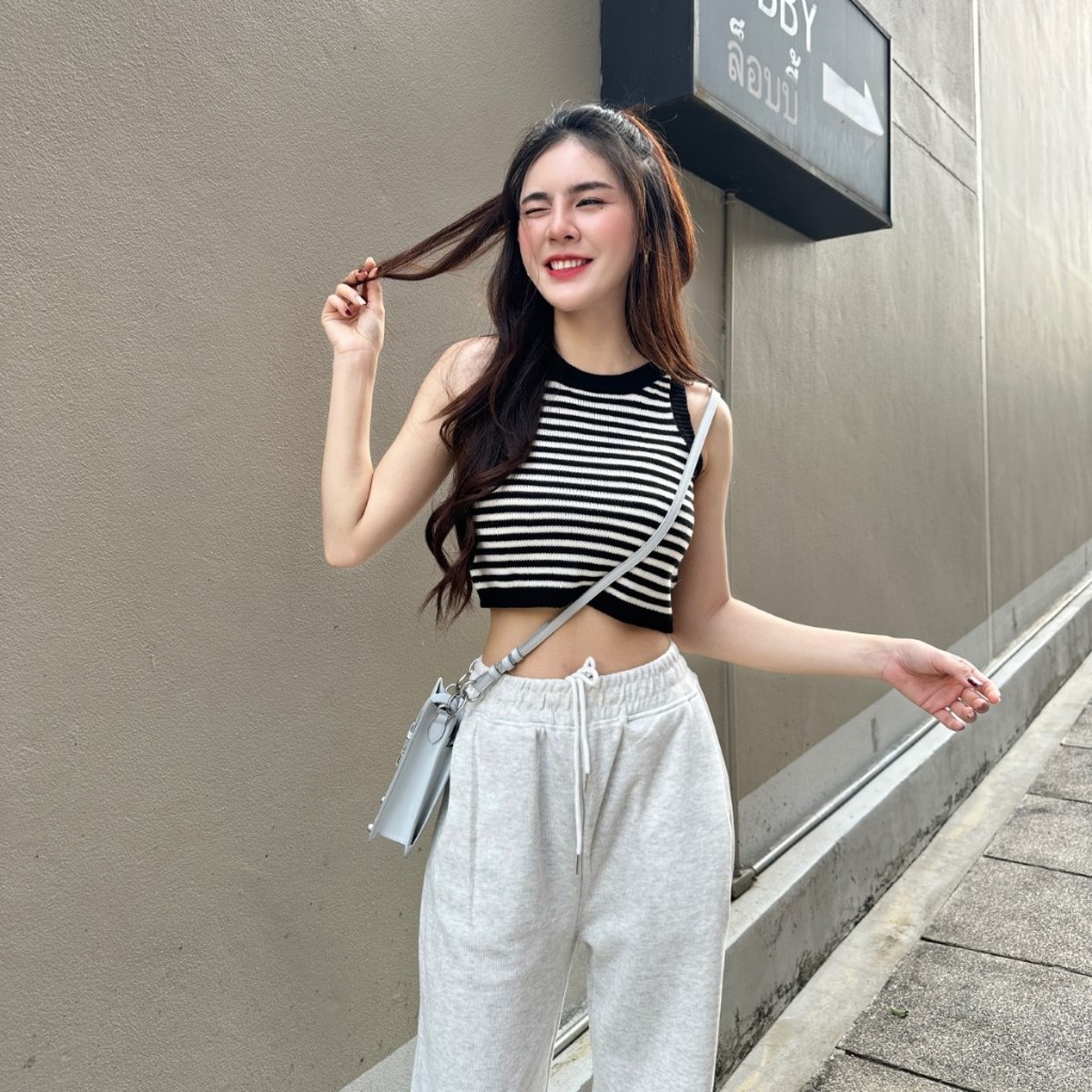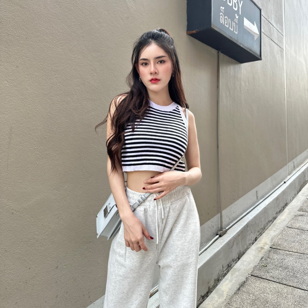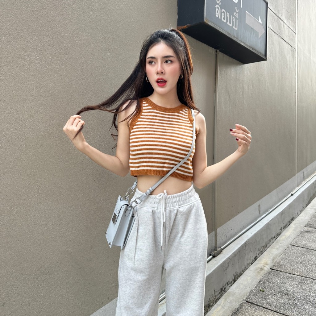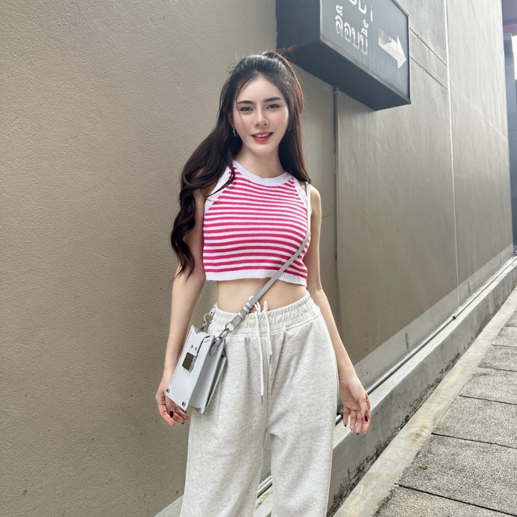 “เสื้้อครอปแขนกุด ผ้าไหมพรมทอลายสลับสี ผ้าบางใส่สบาย 😻 ใส่เที่ยวทะเลก้น่าร้าก แต่งแมตช์ลุคง่ายสุด นางแบบใส่งานจริง รุ่น ฮาร์ทบีท