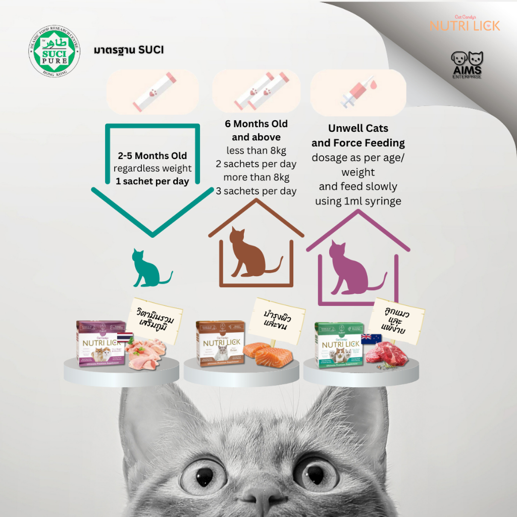 นิวทริ ลิค รสไก่ เพราะเราเองก็เป็นคนรักแมวเราจึงใช้เฉพาะไก่พรีเมี่ยมที่ดีที่สุดในสูตรอาหารของเรา จากดินแดนแห่งรอยยิ้ม ประเทศไทยมีความยั่งยืนในฐานะส่วนสำคัญในการจัดการปศุสัตว์ เราคัดสรรส่วนผสมที่ดีที่สุดเพื่อทำให้ NUTRI LICK มีรสชาติดีสำหรับน้องแมวของเรา