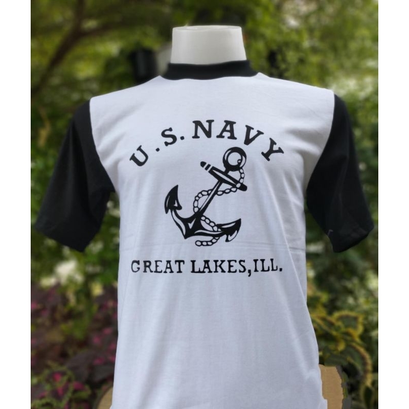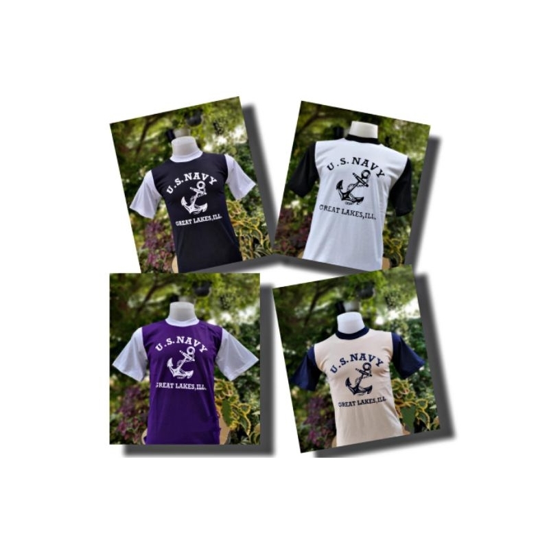 เสื้อยืดแขนต่อผ้าcotton ลาย เนวี่