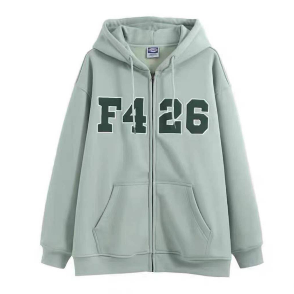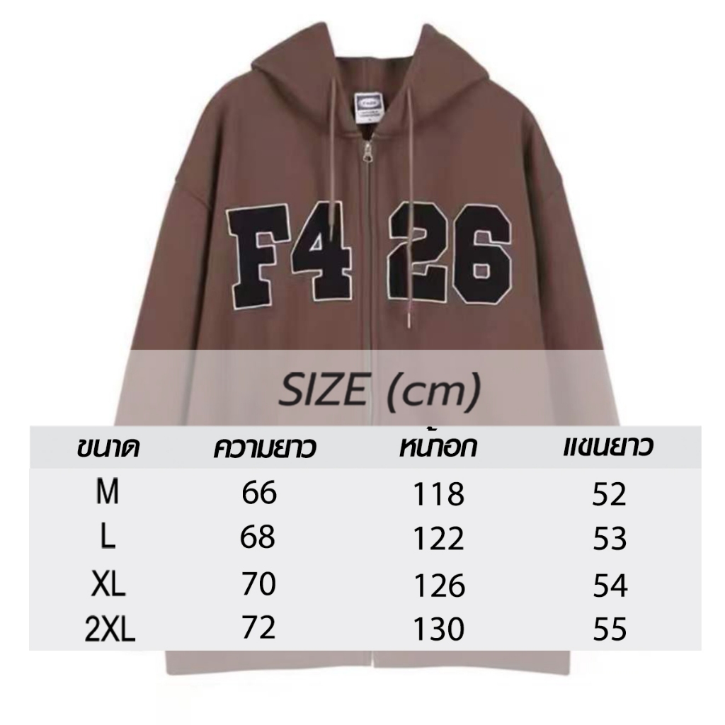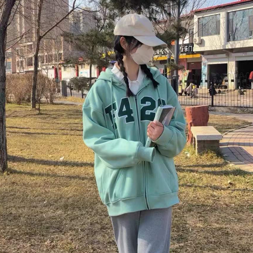 เสื้อแจ็กเก็ตกันหนาว มีฮู้ด แต่งซิป พิมพ์ลายตัวอักษร ทรงหลวม