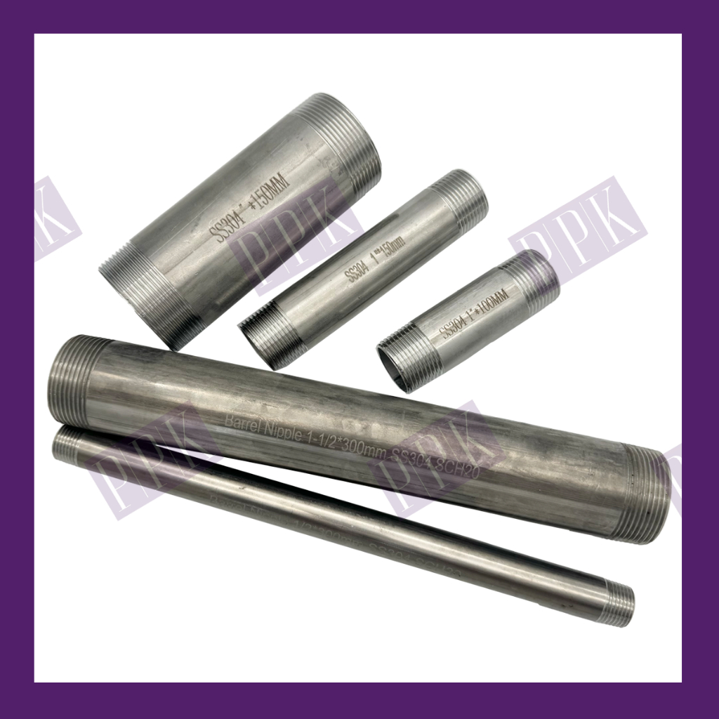 ท่อสั้นสแตนเลส 304 เกลียว 2 ข้าง ท่อต๊าปเกลียว ท่อแป๊ปเกลียวนอก กลึงเกลียวหัวท้าย 1″ – 2″