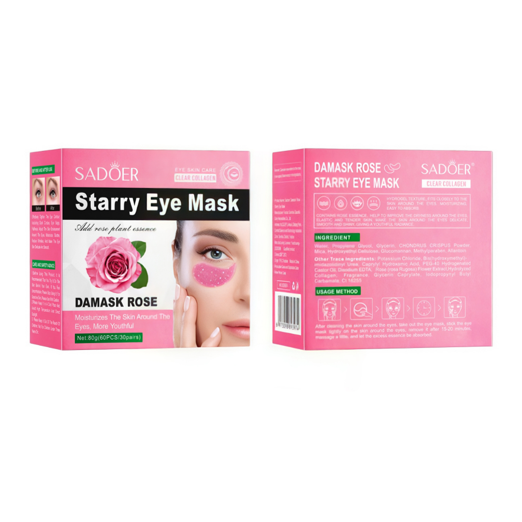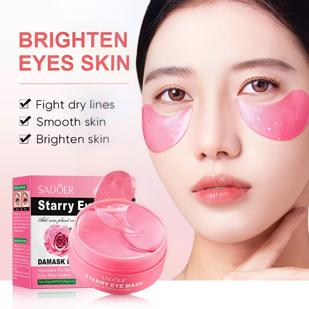 มาส์กใต้ตา SADOER กุหลาบ มาส์กบำรุงรอบดวงตา มาส์ก (60 ชิ้น/30 คู่) กระปุกชมพู