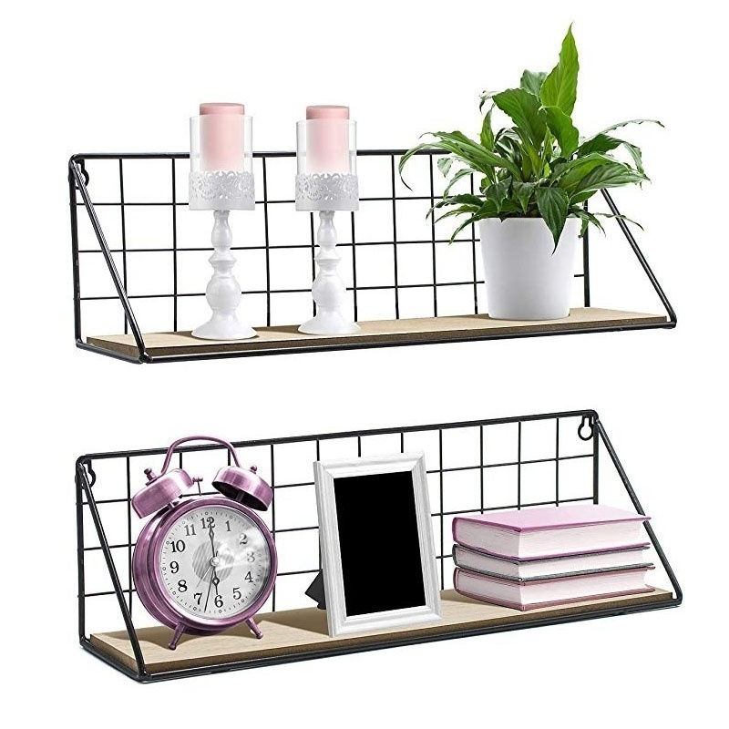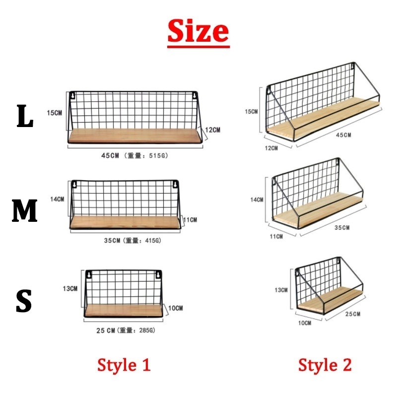 1 x ชั้นวางโลหะ +1 x ไม้ธรรมชาติ +2 x ตะขอ + 2 x เล็บที่ไม่เป็นรอย