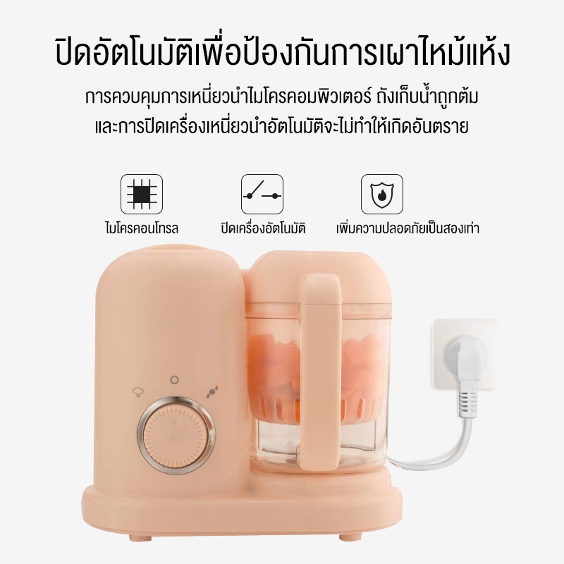 Beige🛒เครื่องนึ่งปั่น เครื่องนึ่งปั่นอาหาร เครื่องบดอาหารเด็ก ระบบตั้งเวลา มัลติฟังก์ชั่น อุ่น นึ่ง