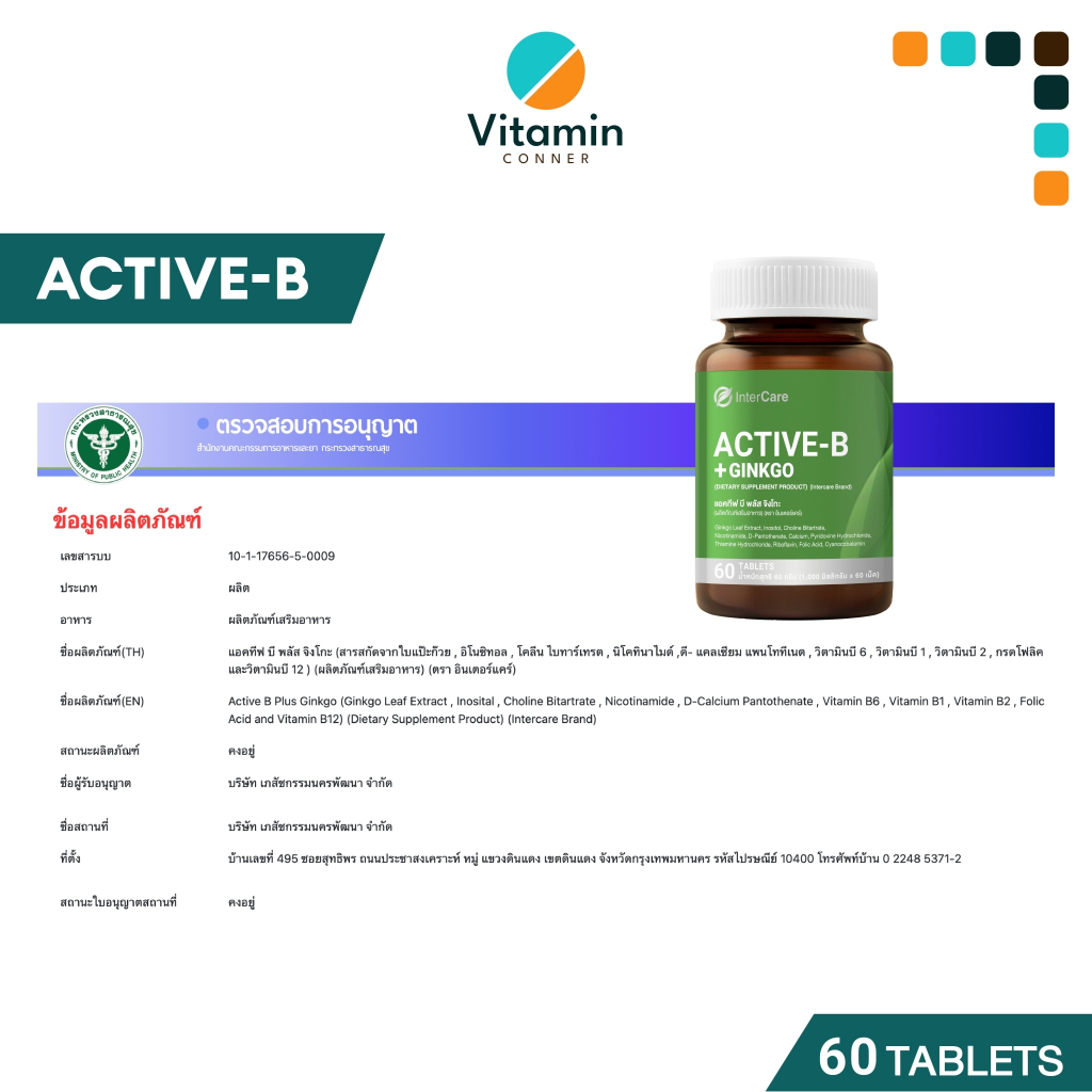 Active B+ Gingko : 1 กระปุก มี 60 เม็ด