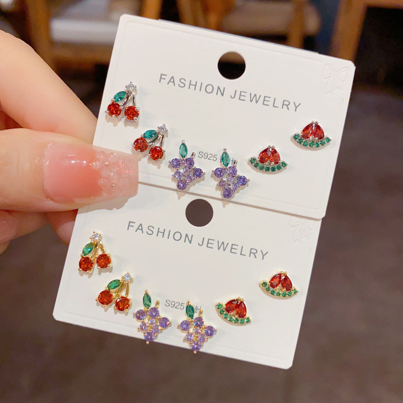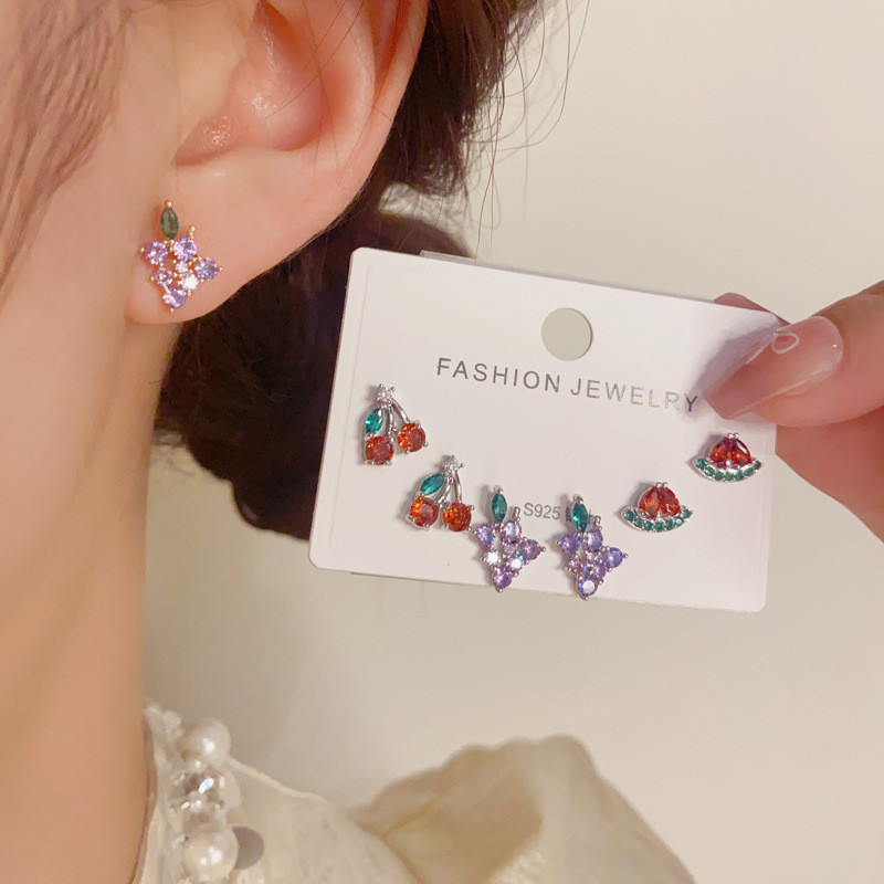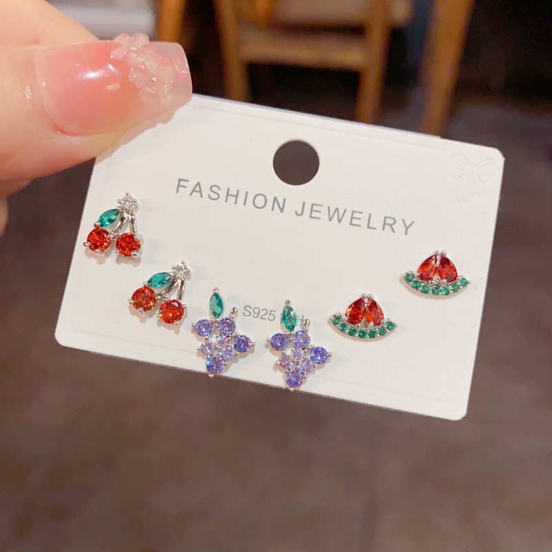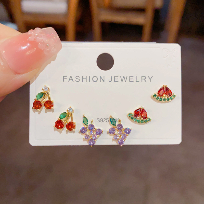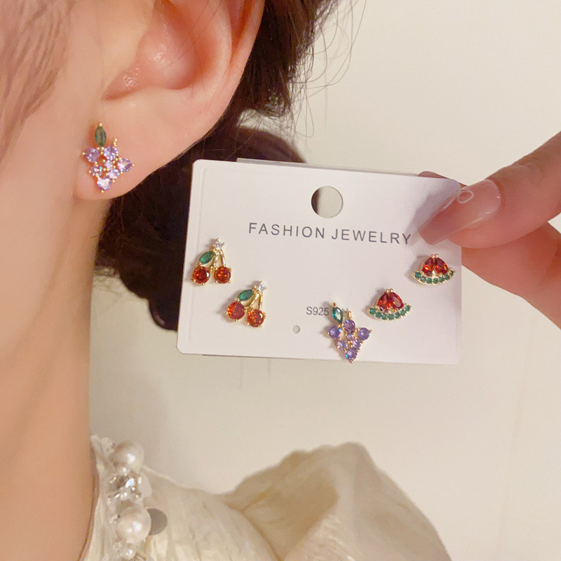 สไตล์ใหม่อารมณ์แฟชั่นผลไม้ชุดสามชิ้นต่างหูขนาดเล็กที่สวยหรู