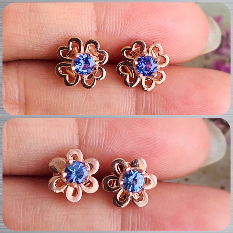 🦋ต่างหูสตั๊ด พลอยแทนซาไนท์ พลอยดิบที่พบได้จากแหล่งเดียวในโลกคือประเทศแทนซาเนียค่ะ( Natural Unheated Tanzanite From Tanzania.)เป็นพลอยสีครามอมม่วง ทางร้านใช้พลอยเกรดท็อป สีสวยเป็นประกาย เจียระไนกลม 3.5 mm พลอยเนื้อสะอาดไฟดีทุกคู่ค่ะ