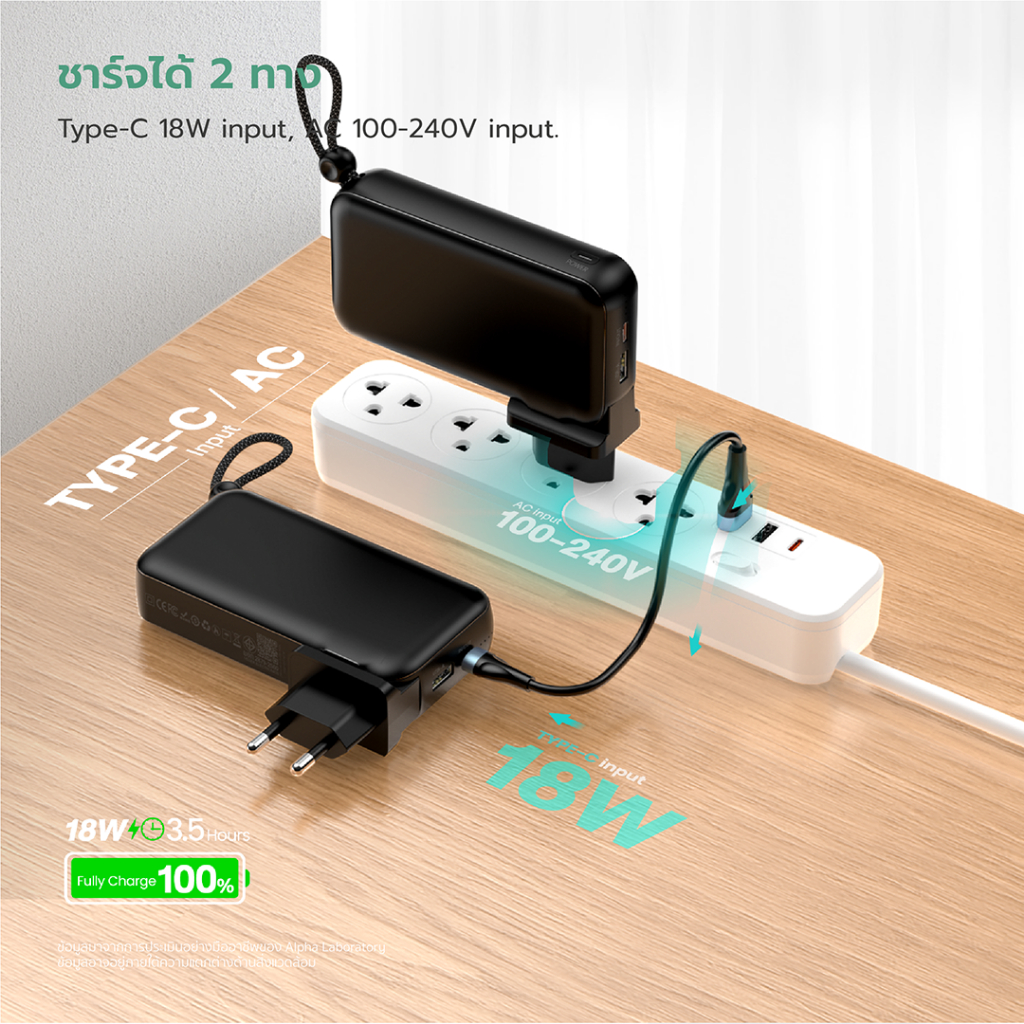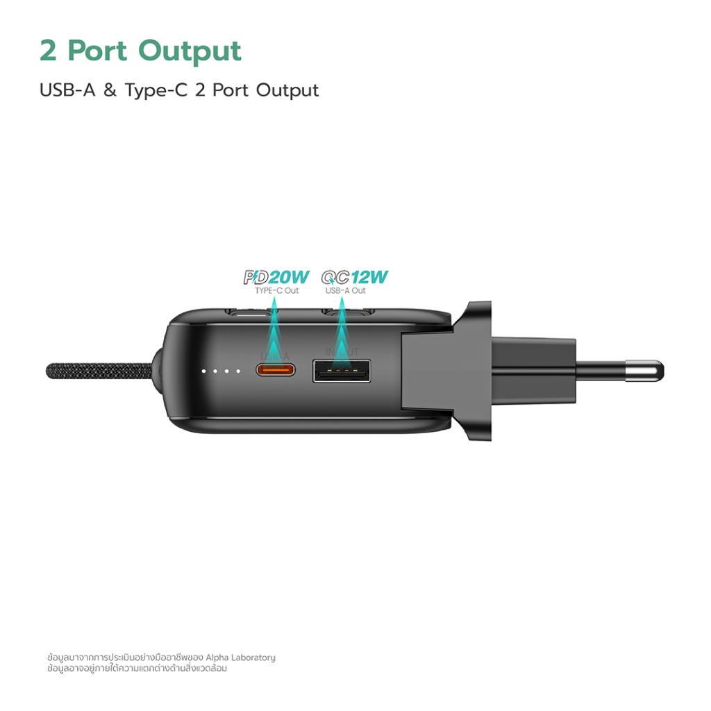 📍 จุดเด่นสินค้า – พาวเวอร์แบงค์ 3in1 – แบตเตอรี่สำรองความจุ 10000 mAh – ขนาดพอดีมือ น้ำหนักเบา 274.5 กรัม พกพาสะดวก – สายชาร์จ Built-in