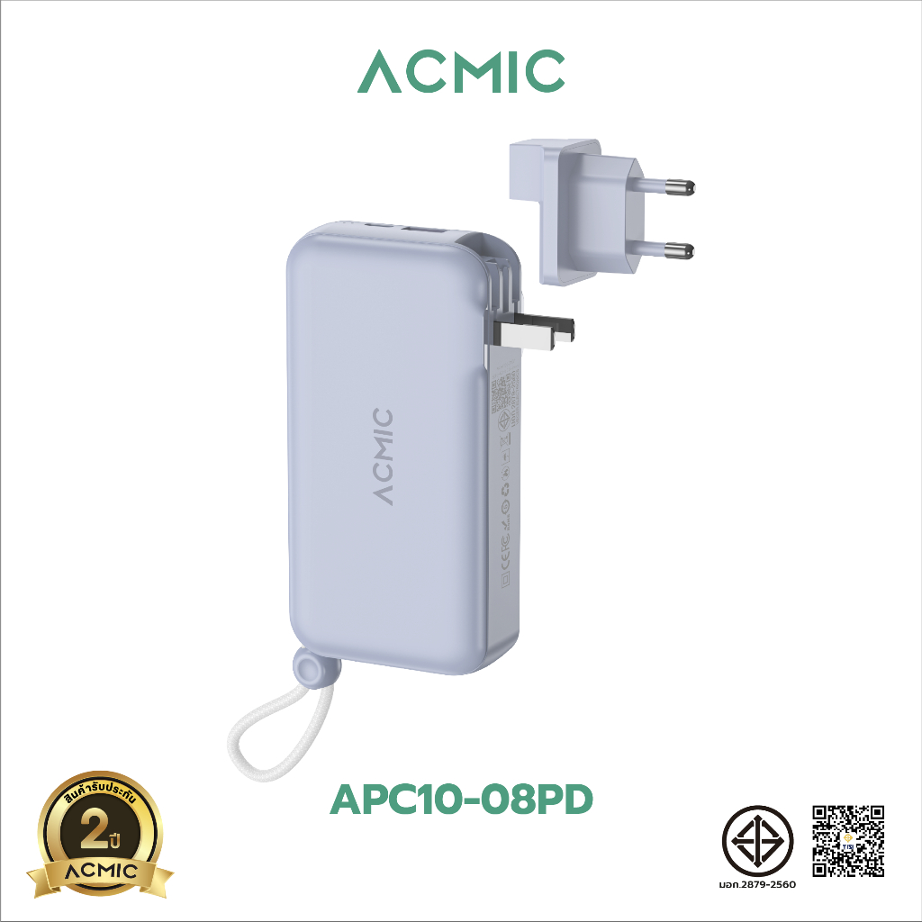 [มี CCC] ประกัน2ปี ACMIC APC10-08PD Powerbank 10000mAh พาวเวอร์แบงค์ 3in1 ชาร์จเร็ว PD20W สายชาร์จและขาปลั๊กในตัว