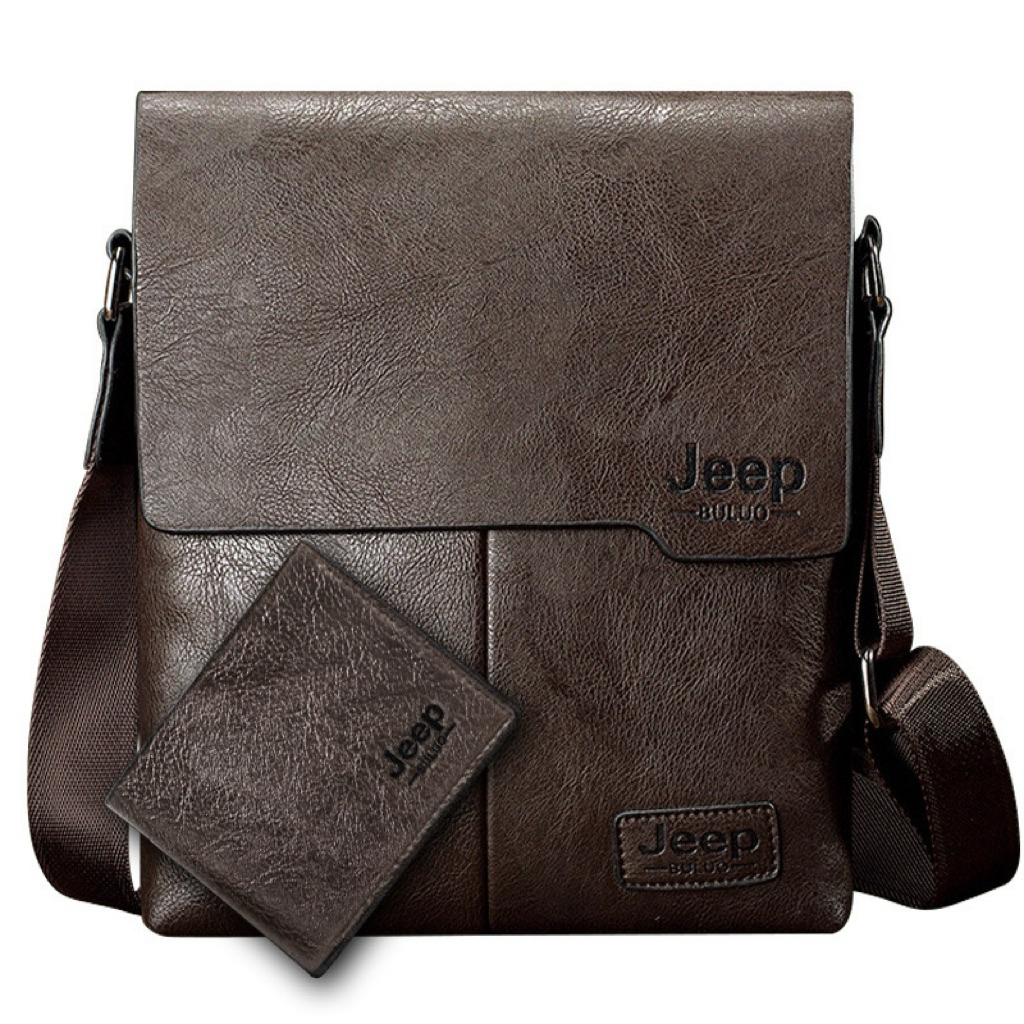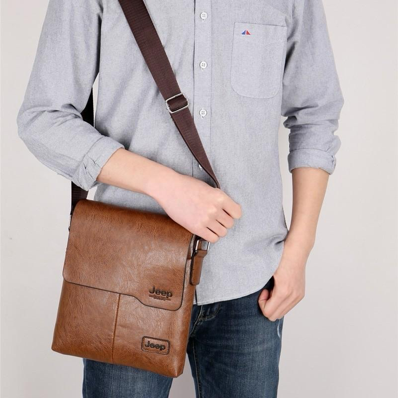 กระเป๋าสะพายผู้ชาย Jeep วินเทจ Messenger เครื่องหนัง กระเป๋าสะพายธุรกิจ (สี่เหลี่ยม)