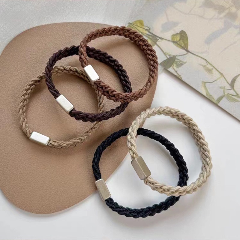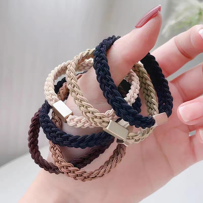 ในไทย💖ยางรัดผมเชือกถักยืดหยุ่นสูงทนทานเรียบง่ายสําหรับผู้หญิงราคาส่งถูกที่สุด.COD