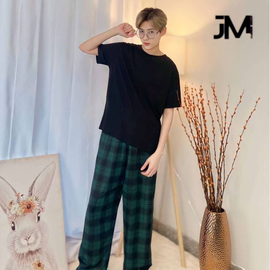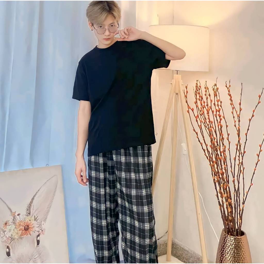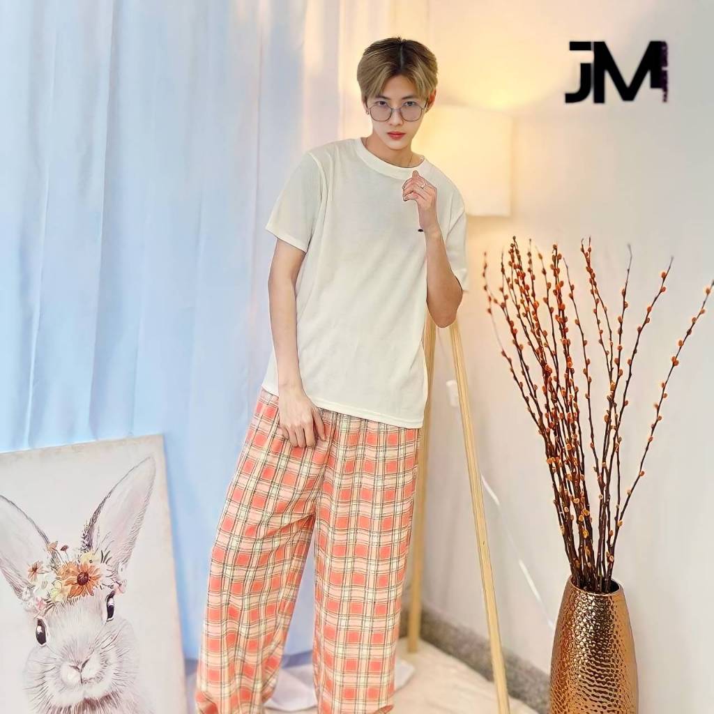 กางกงลายสก็อตขายาว ใส่ได้ทั้งชาย-หญิง Free Size พร้อมส่ง (มีเชือก)