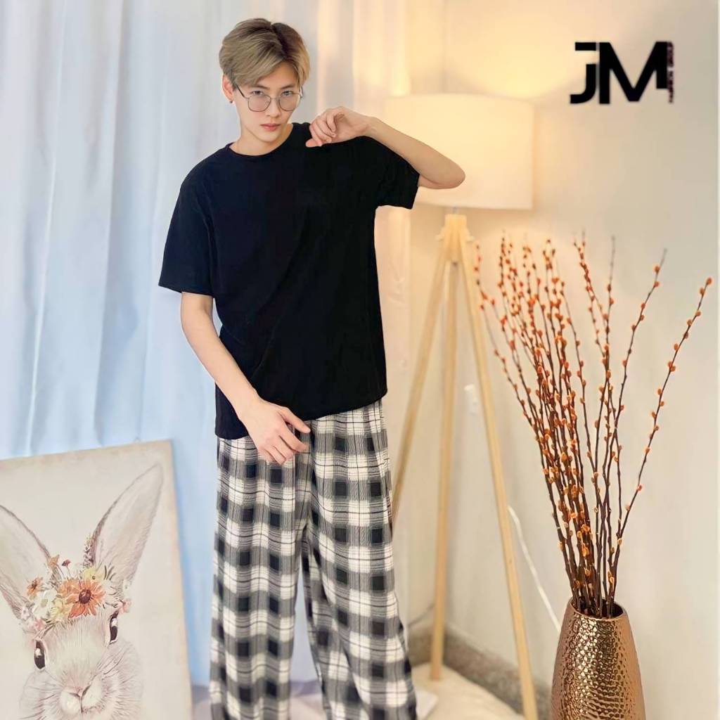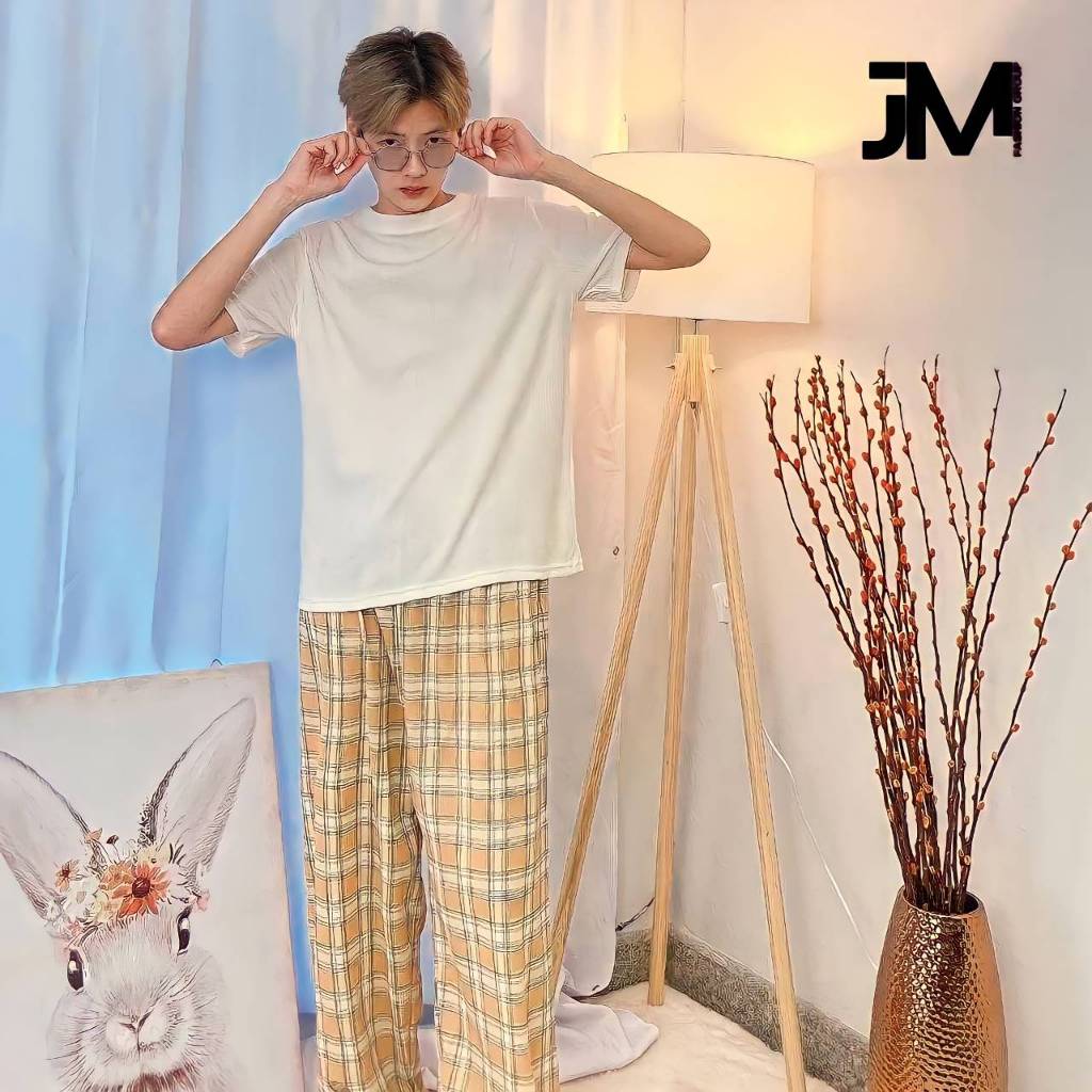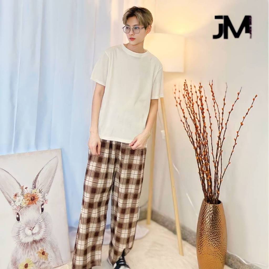 กางกงลายสก็อตขายาว ใส่ได้ทั้งชาย-หญิง Free Size พร้อมส่ง (มีเชือก)