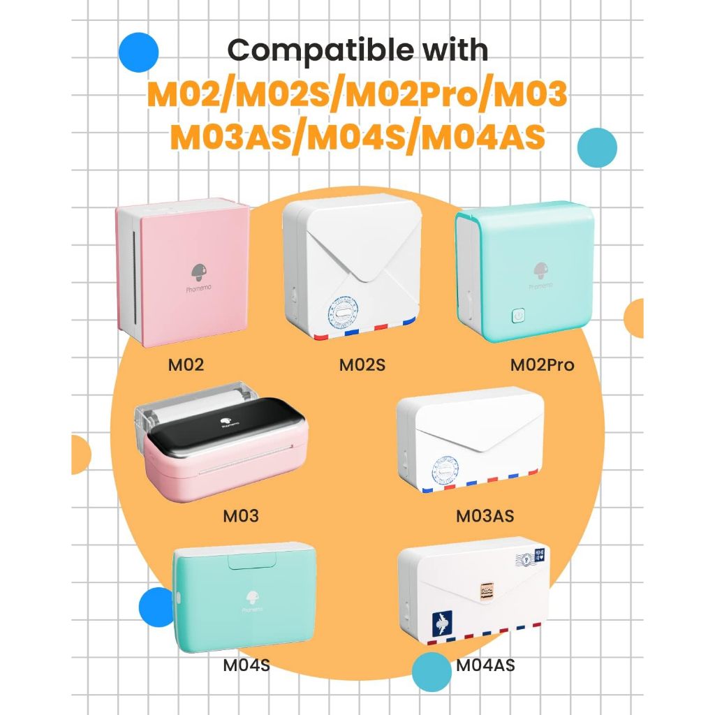 ✅การใช้งานที่หลากหลาย – T02/M02X/M02L/M02/M02S/M02PRO/M03/M03AS/M04S/M04AS/M200/M220/M221/241BT/245BT/249BT/246S/D520BT/344WF/M832/M833/M834/M835 เครื่องพิมพ์ความร้อน
