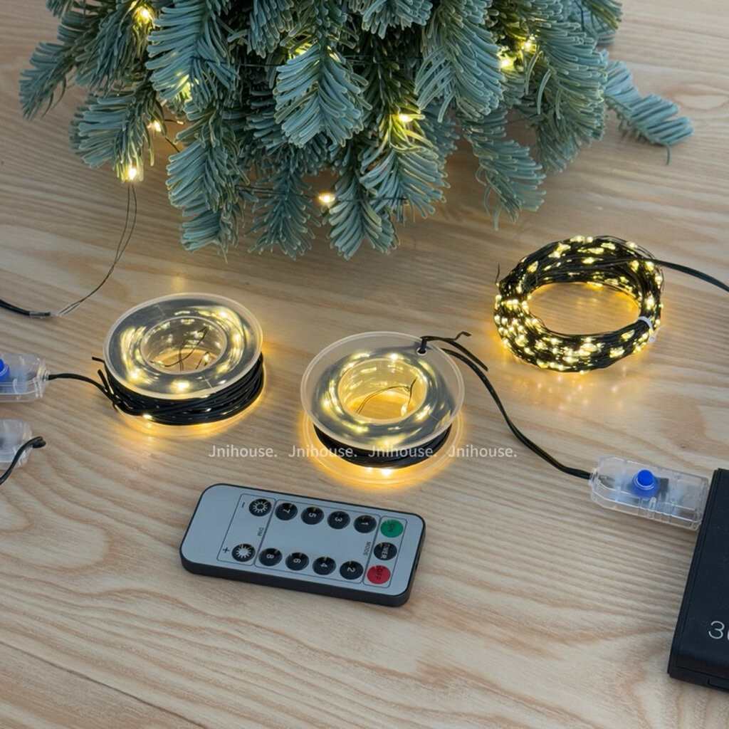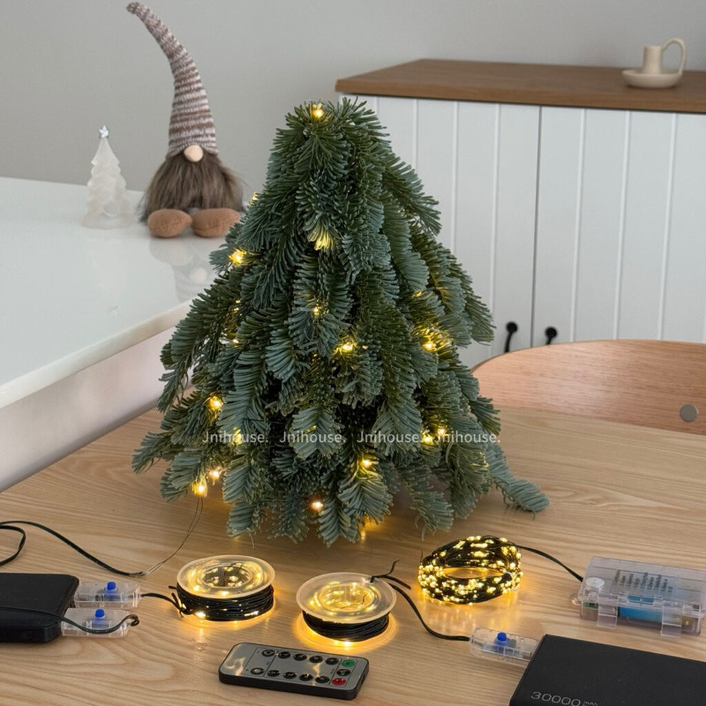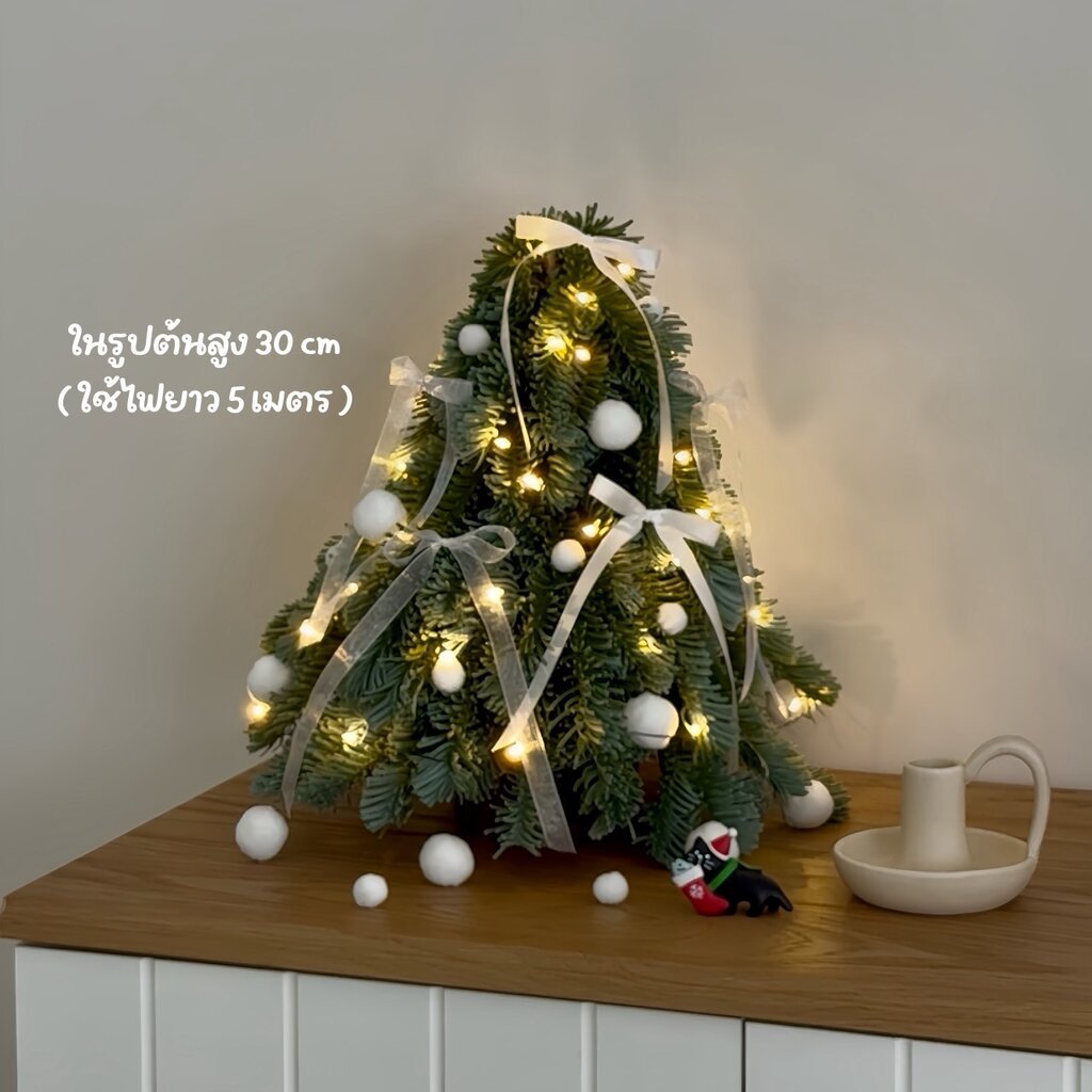 ไฟประดับคริสต์มาส สายลวดสีเขียวเข้ากับต้นคริสต์มาส