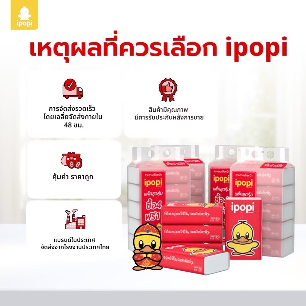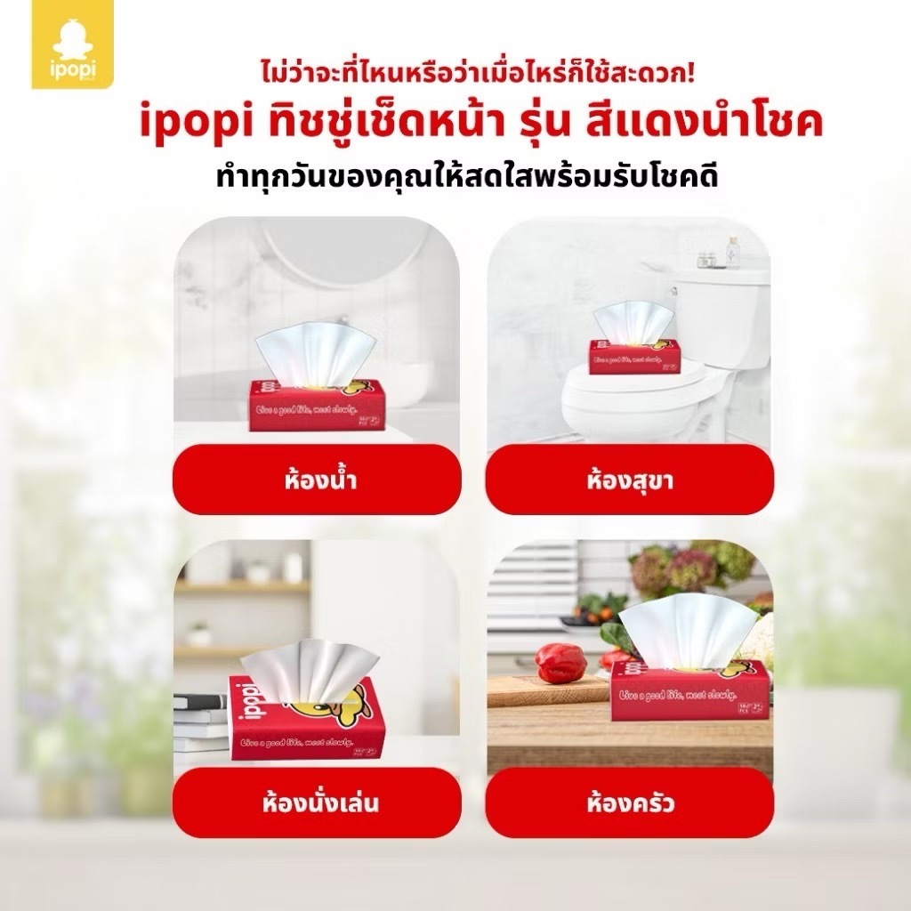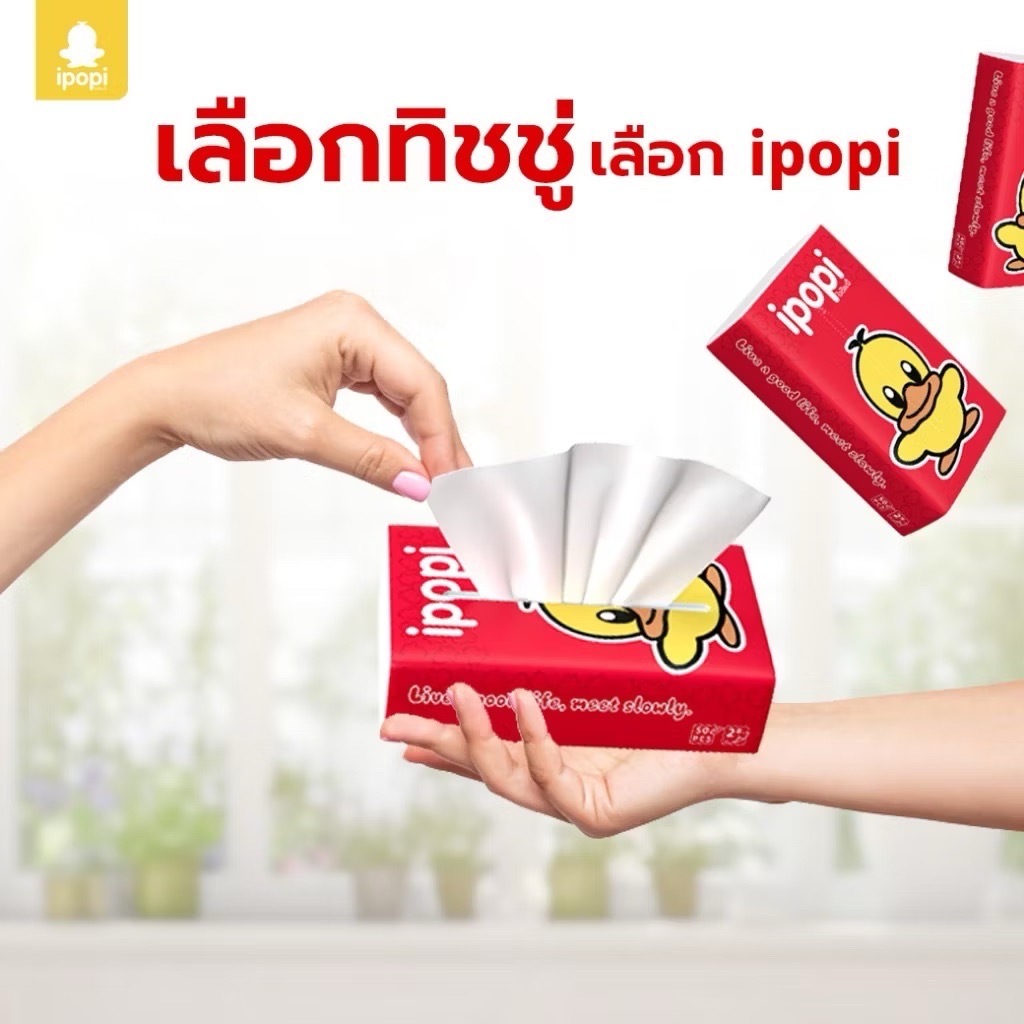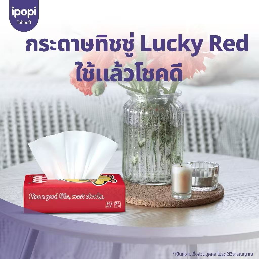 ipopi กระดาษทิชชู่แบบดึง ห่อสีแดง 25 ห่อ (50 แผ่น/ห่อ ) หนา 2 ชั้น ได้รับมาตรฐาน ขนาดพกพา