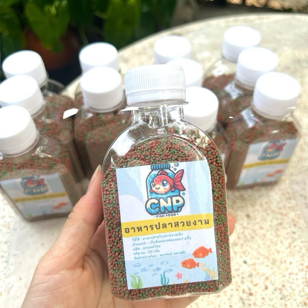 อาหารปลาสวยงาม เม็ดจิ๋ว สีเขียวแดง ยกโหล แพ็ค 12 ขวด
