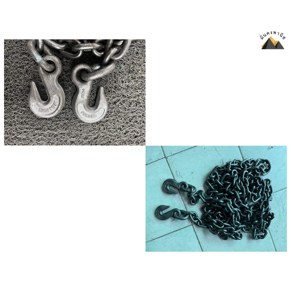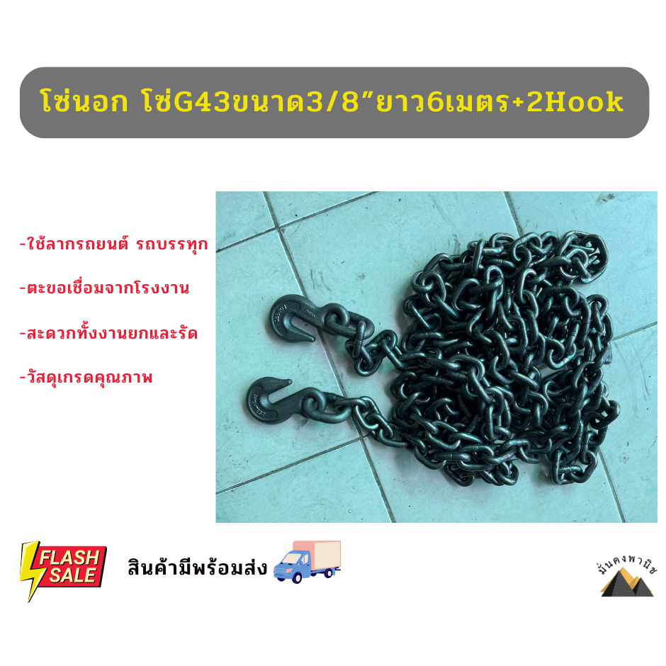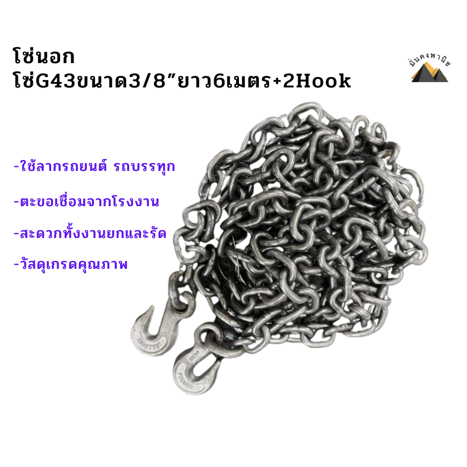 โซ่เหล็ก เกรดG43 ของใหม่ โซ่ลากรถ โซ่เหล็กอัลลอยด์ โซ่ยก โซ่รัดเหล็ก โซ่นอกG43 ขนาด 3/8″(9.5mm.) ยาว6เมตร พร้อมตะขอ 2ข้าง เชื่อมข้อห่วงสำเร็จจากโรงงานของแท้