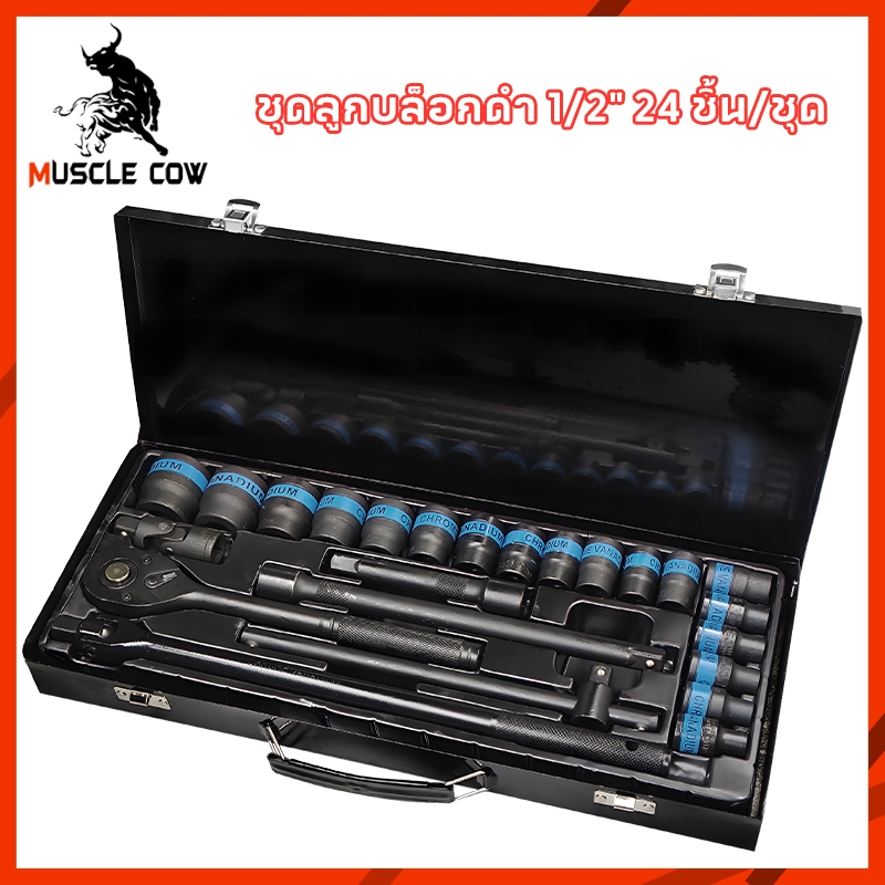 MUSCLE COW ชุดบล็อกประแจ เครื่องมือช่าง ชุดประเเจ ประแจ ชุดบล็อก 24 ชิ้น ขนาด 1/2 จำนวน 24 pcs