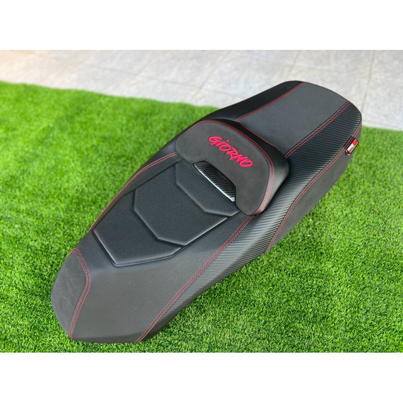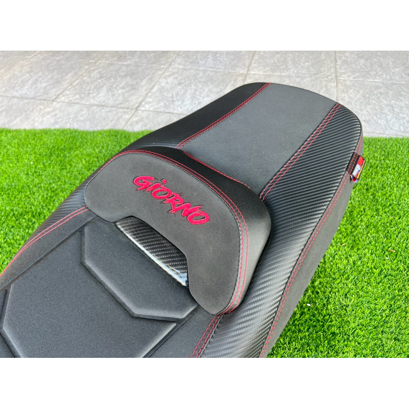 เบาะแต่ง Giorno ทรงสปอร์ต ทรงสวย สายทัวริ่ง นิ่ม นั่งสบาย ด้ายสีแดง ปัก Giorno สีแดง มีคาบอร์น