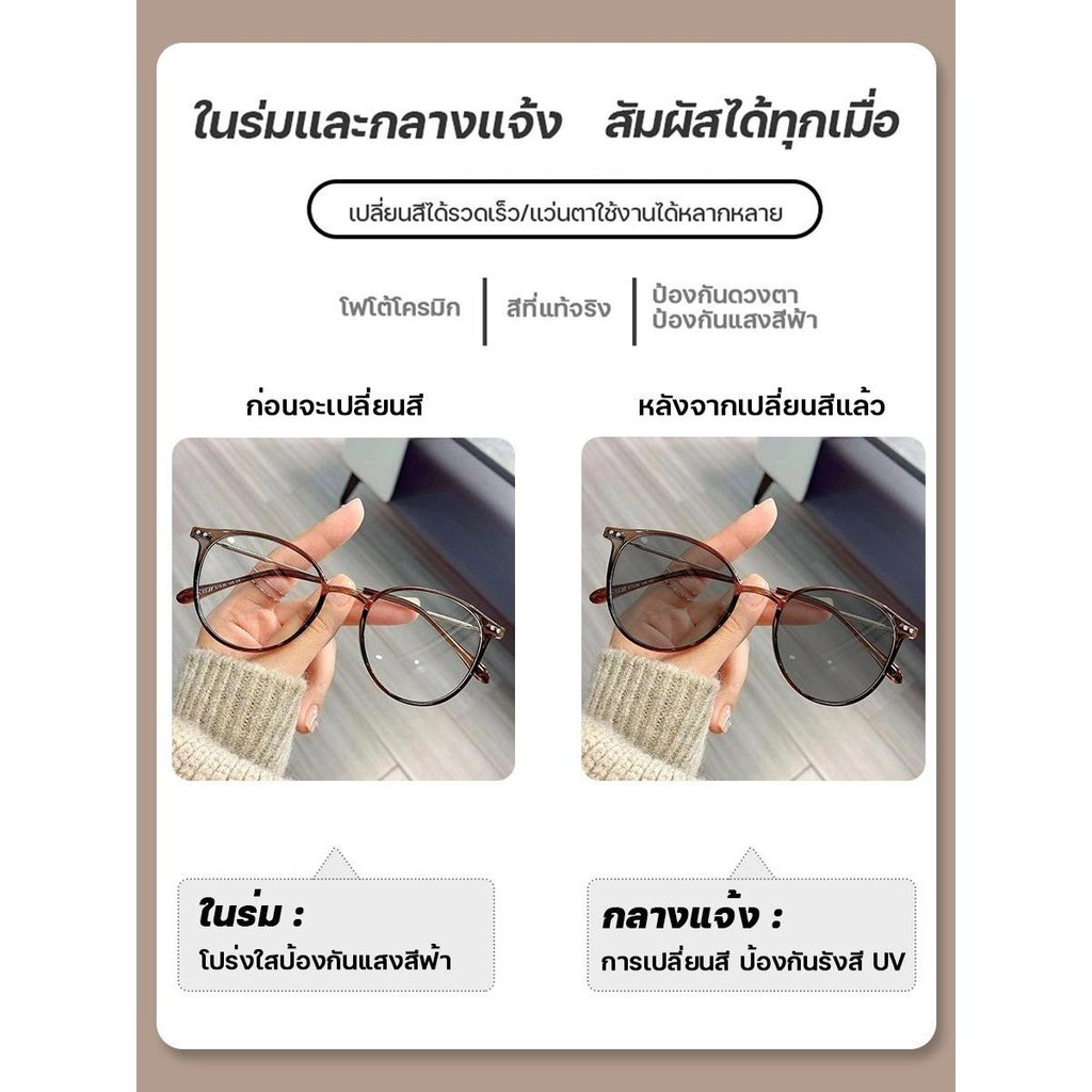 หยิบใส่ตะกร้าสายตายาว/แว่นสายตาสั้น เลนส์ออโต้ ออกแดดเปลี่ยนสี แว่นกันแดด UV400 กรองแสงสีฟ้า กันUV99% แว่นตากรองแสง Computer Glasses