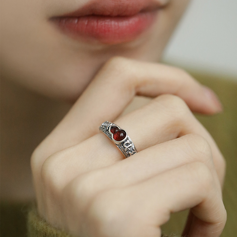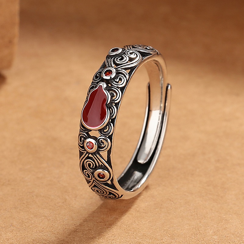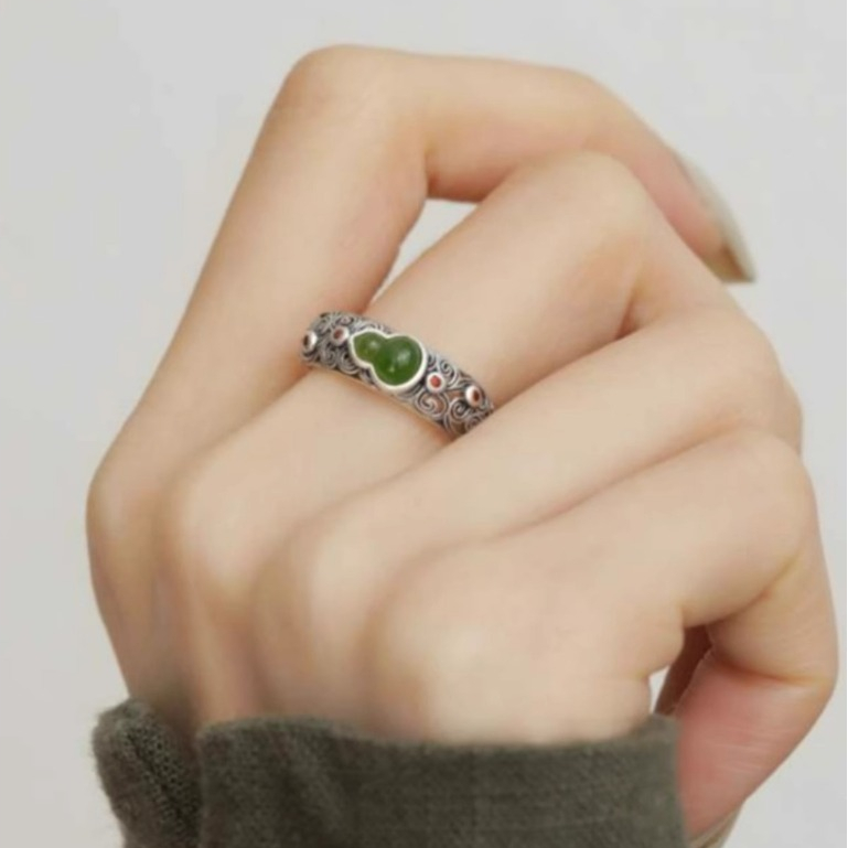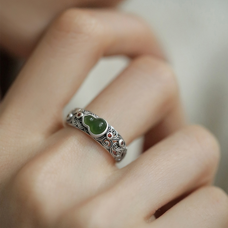 🔸🔸🔸[ชื่อสินค้า]: S925 Silver Jasper Auspicious Cloud Gourd Ring Thai Silver แหวนนิ้วเปิดปรับได้