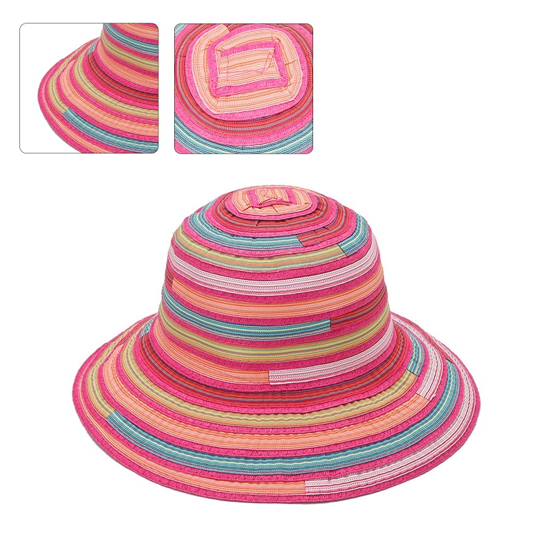 หมวกปีกกว้าง ป้องกันรังสียูวี สีรุ้ง แบบพับได้ แฟชั่นฤดูใบไม้ผลิ และฤดูร้อน สําหรับผู้หญิงวัยรุ่น
