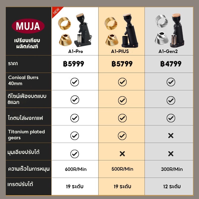 A1 Pro ส่วนเฟืองจะเป็น Titanium Conical Burrs 40mm.