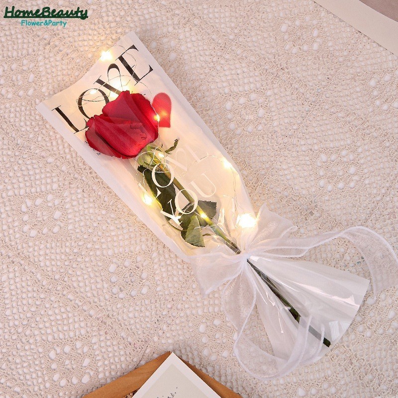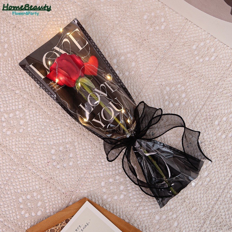 คุณสมบัติ: กระเป๋าดอกไม้: บรรจุภัณฑ์ดอกไม้เดียวน่ารักกันน้ำการออกแบบการปิดกั้นสีทำให้ดอกไม้ของคุณเป็นที่นิยมในทุกโอกาสการตกแต่งกุหลาบที่เรียบ